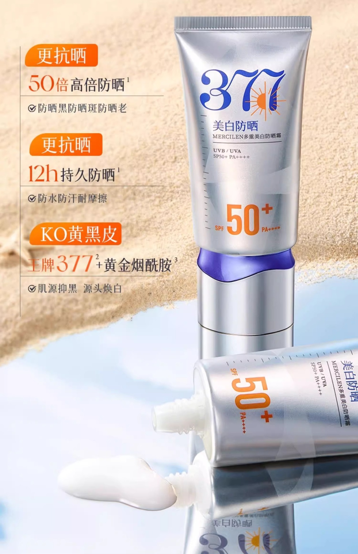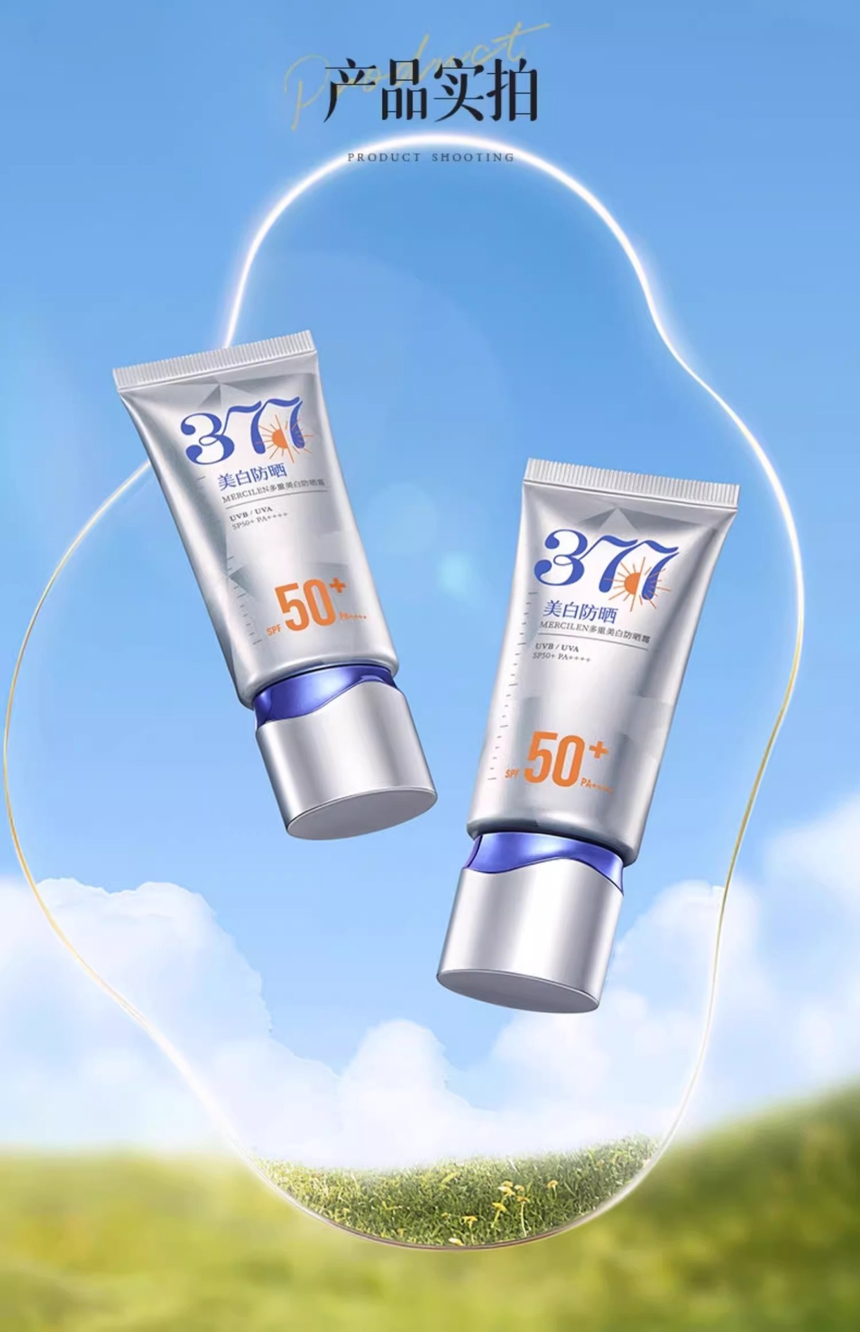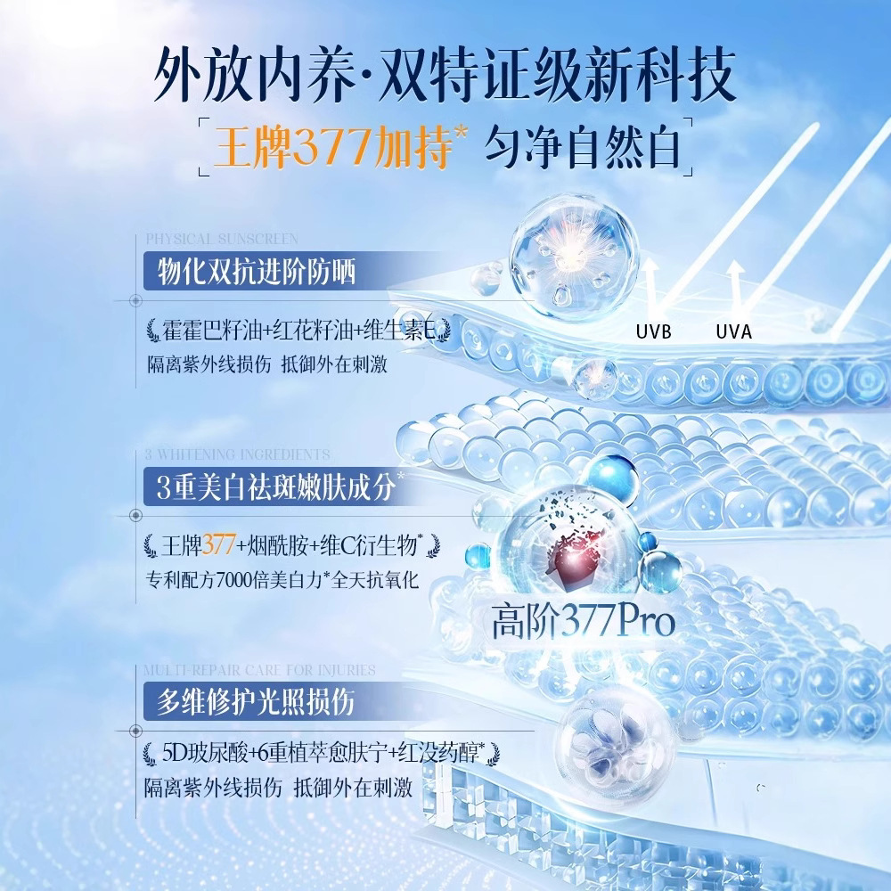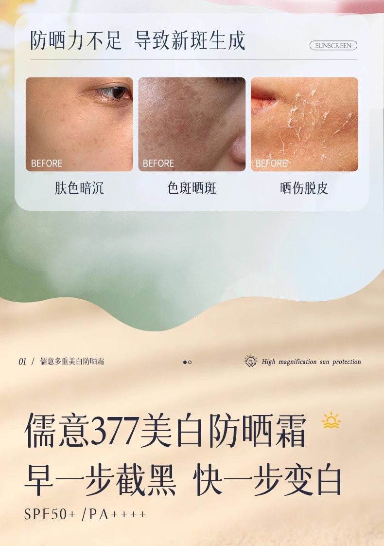 377美白高倍防晒霜持久防水防汗控油隔离美白保湿滋润提亮