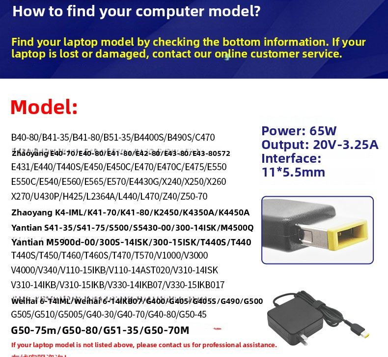 适用于联想笔记本电脑Thinkpad65W电源G480/G485救世主小新Air90W