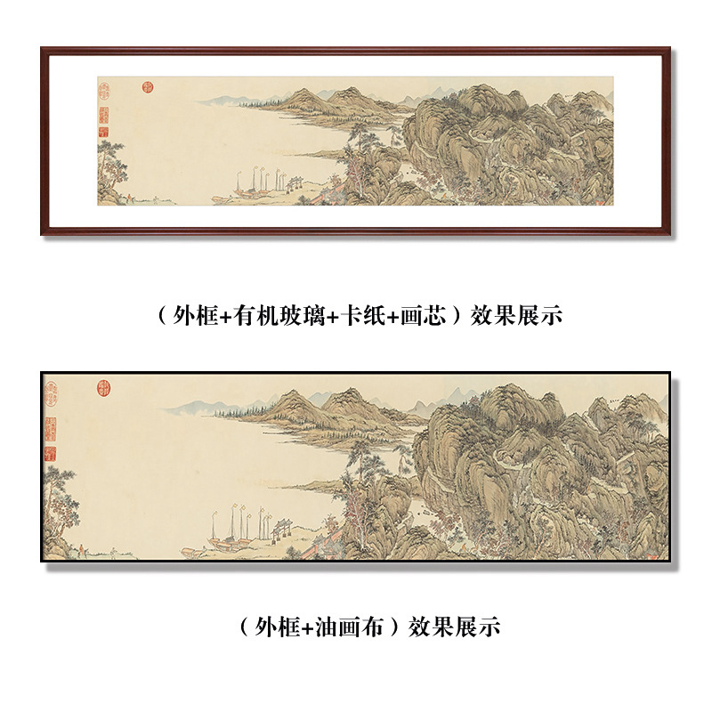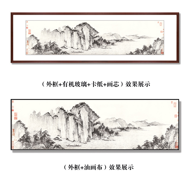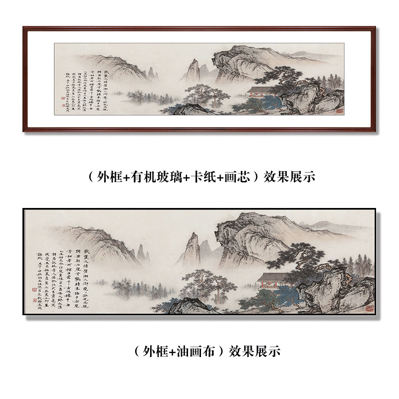 山水装饰画客厅沙发背景办公室壁画新中式喷绘国画实木高级感挂画