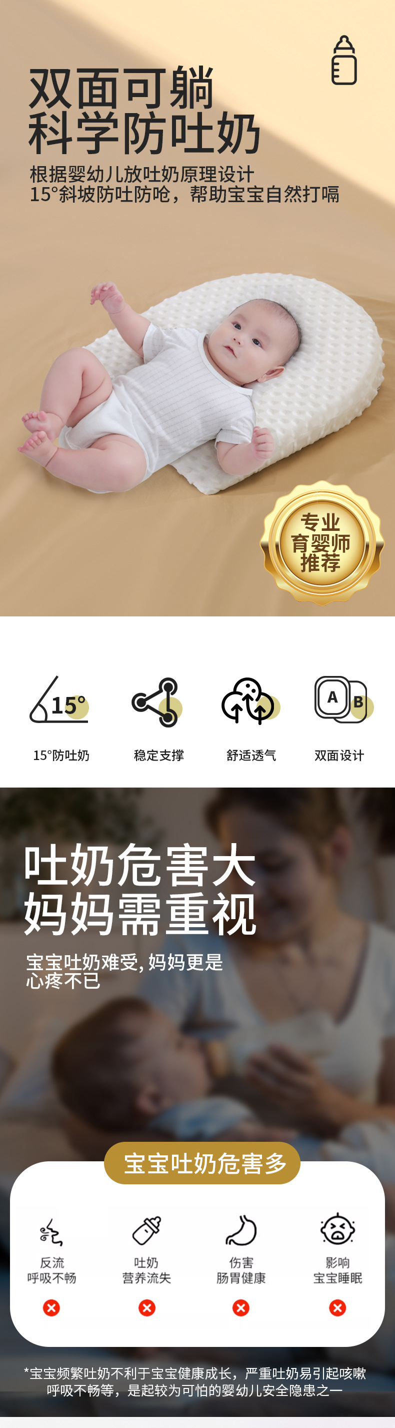 婴儿防吐奶斜坡垫防溢奶呛奶斜坡枕新生儿喂奶枕喂奶神器枕