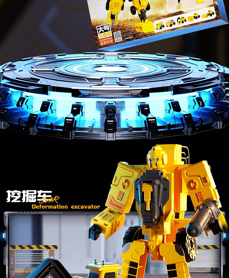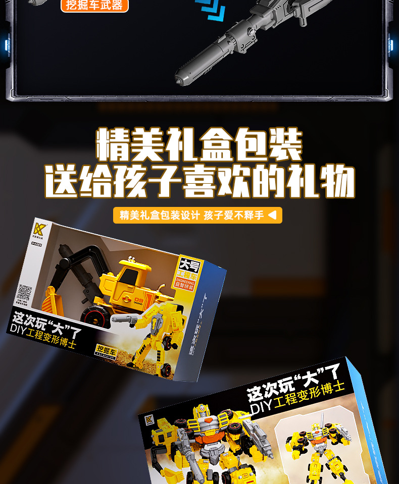 变形机甲合体机器人模型金刚工程车儿童玩具男孩拼装益智礼物