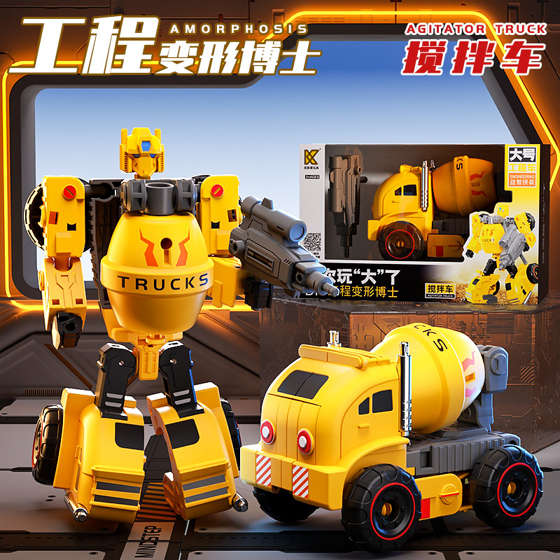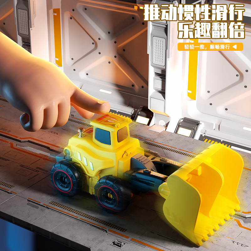 惯性工程车撞击变形机器人男孩挖掘机吊车搅拌车儿童玩具