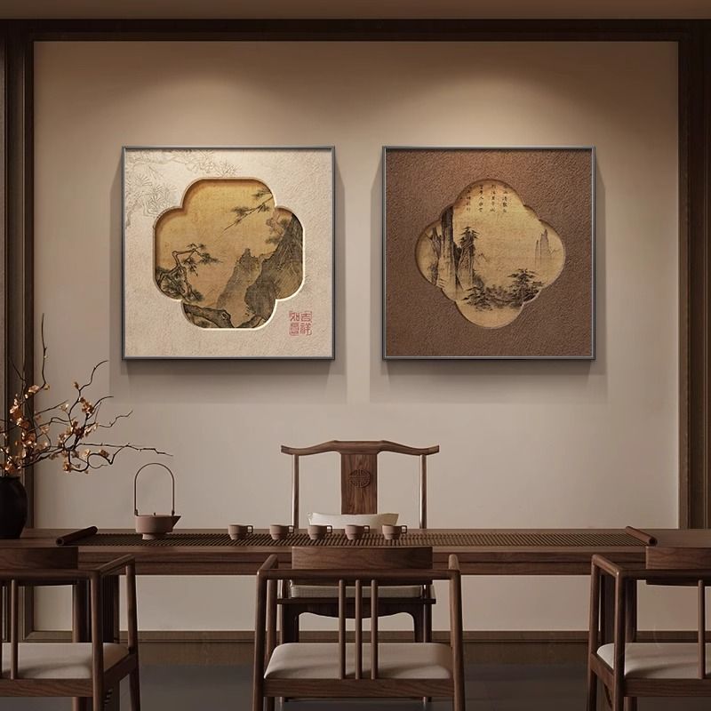 新中式玄关装饰画水墨山水画书房挂画宋代美学茶室氛围布置高级感