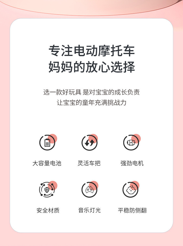 儿童电动摩托车女宝宝充电三轮车遥控双驱动男孩玩具车小孩电瓶车