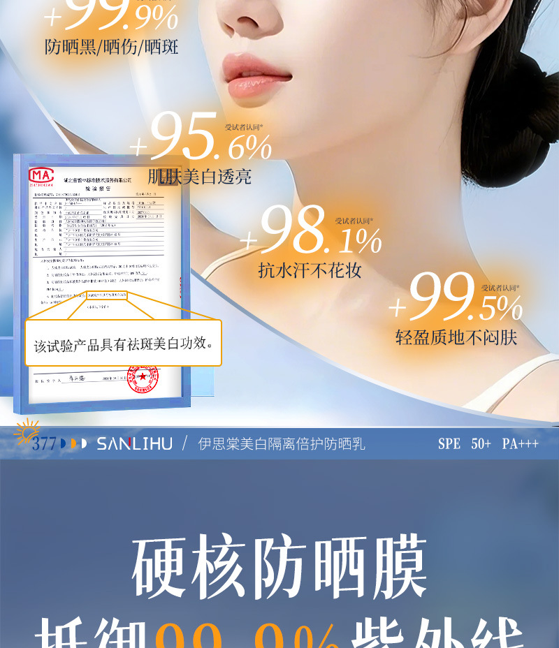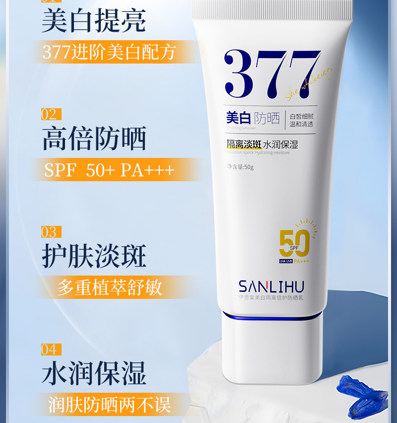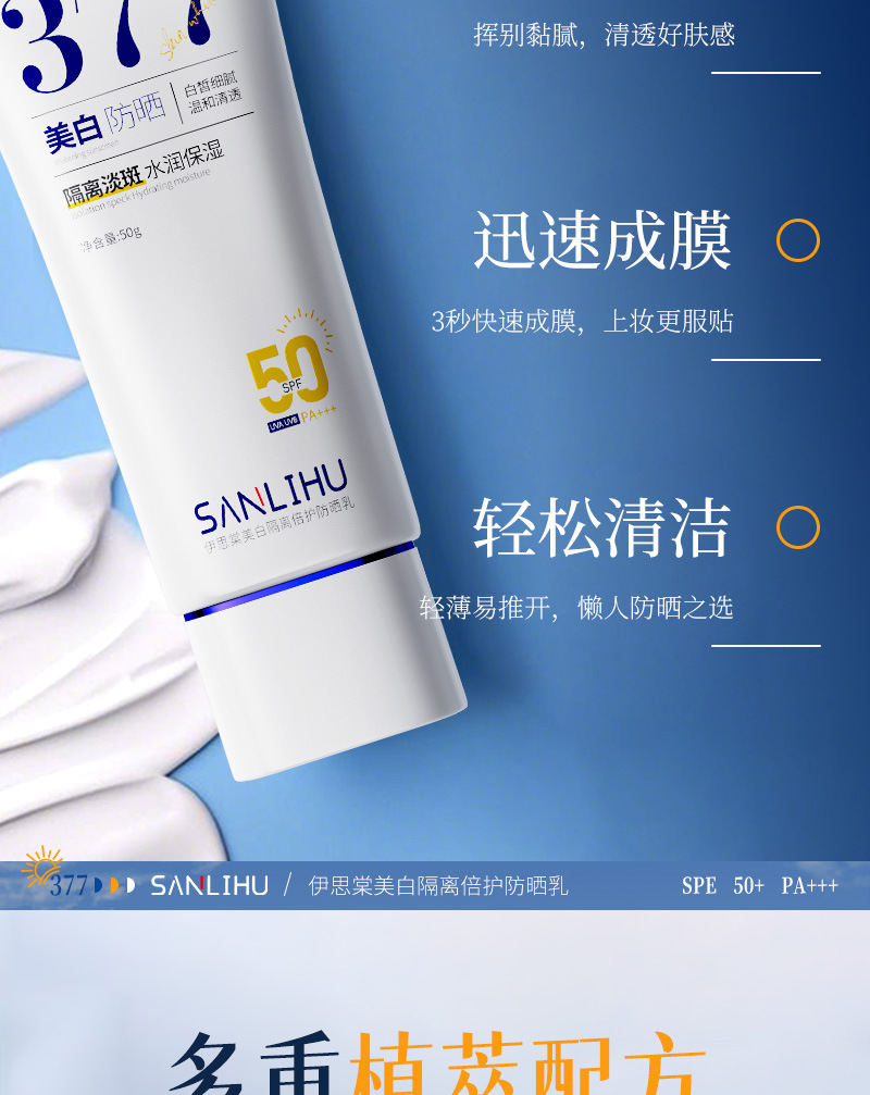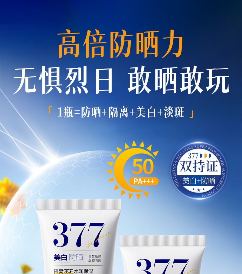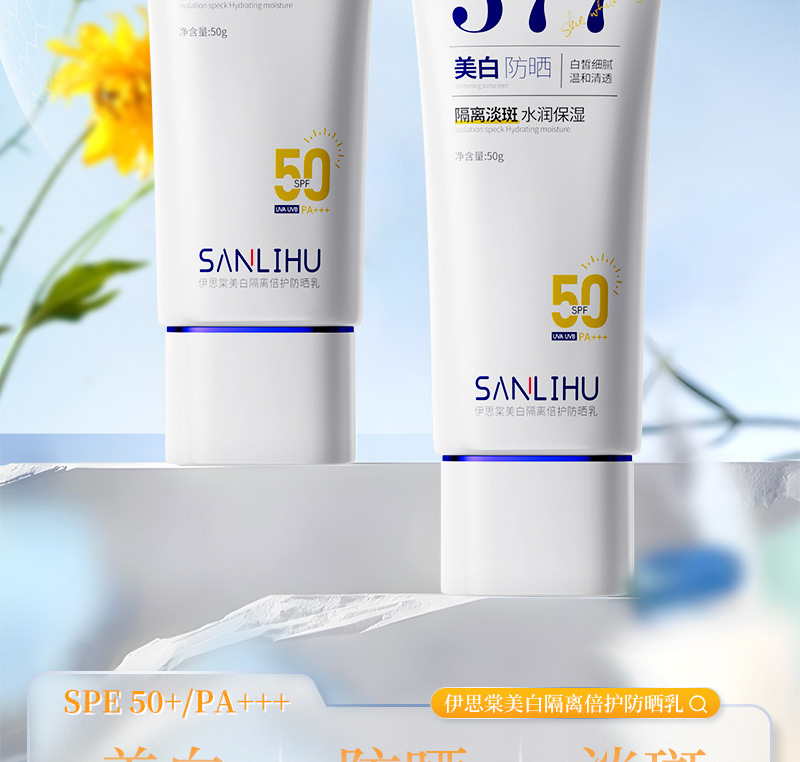 美白防晒霜SPF50+高倍防紫外线防水防汗隔离防晒乳大军训