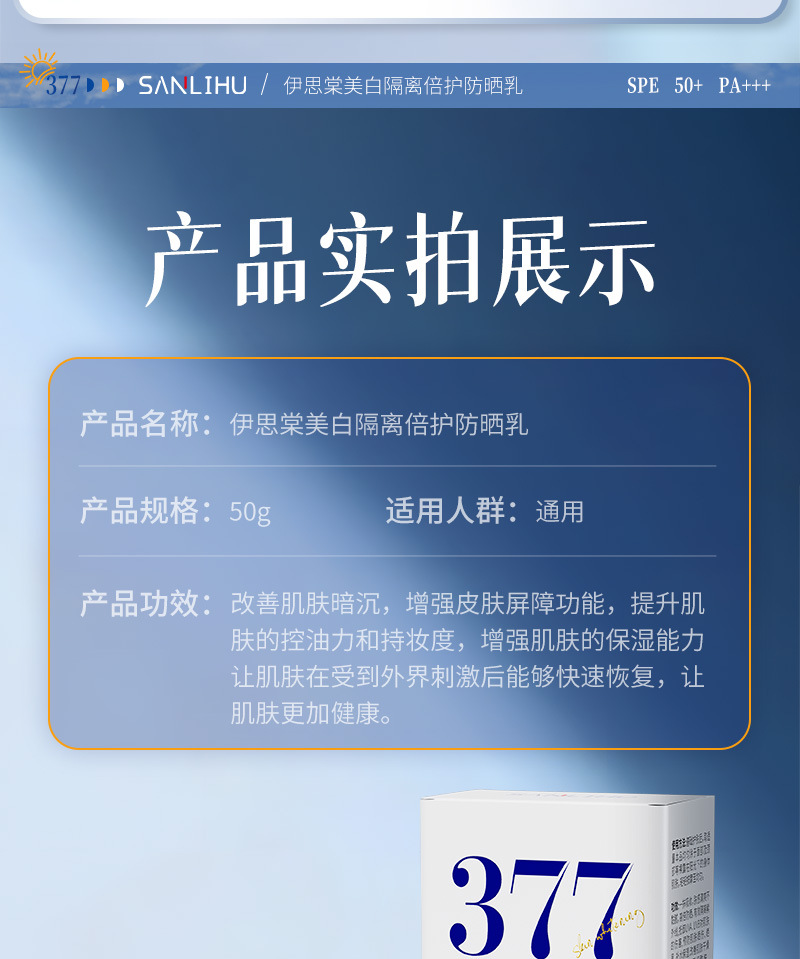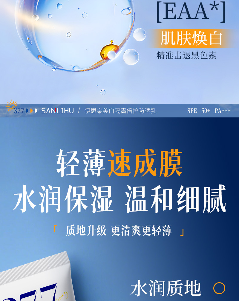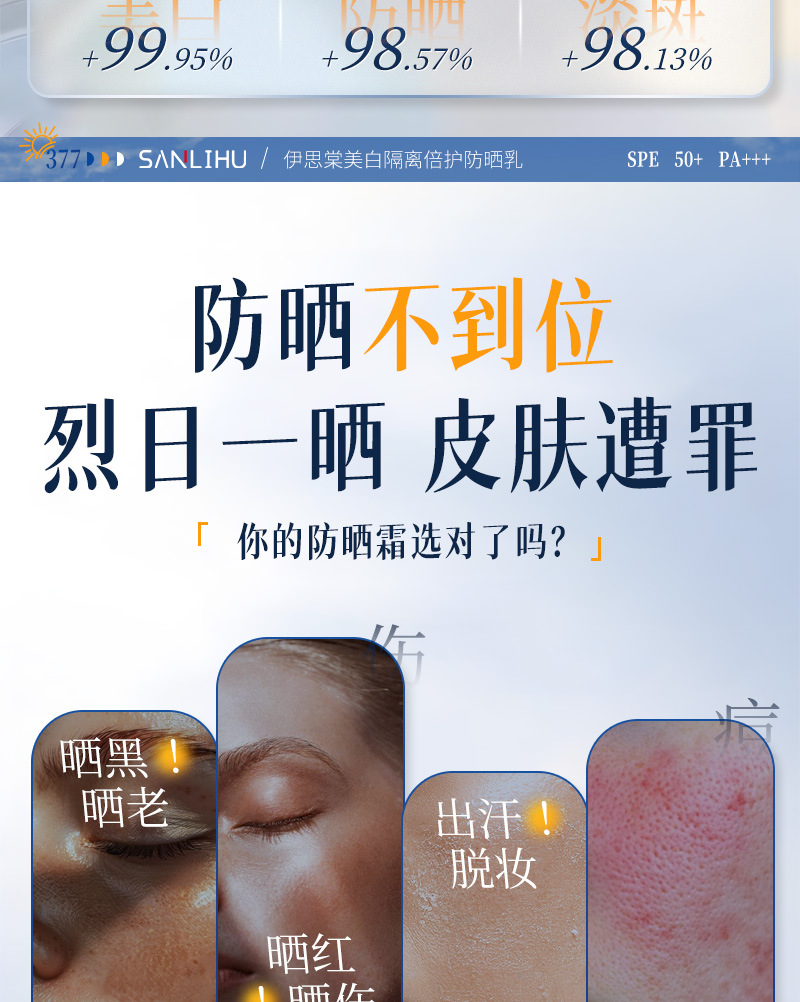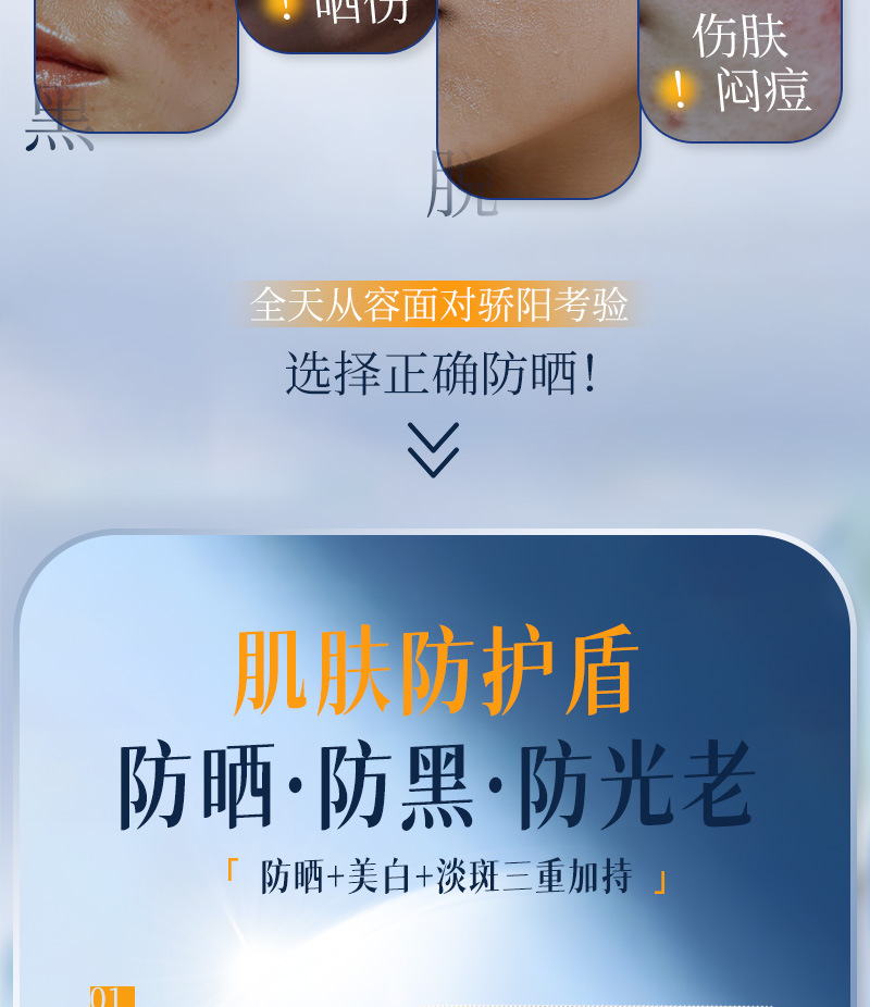 美白防晒霜SPF50+高倍防紫外线防水防汗隔离防晒乳大军训