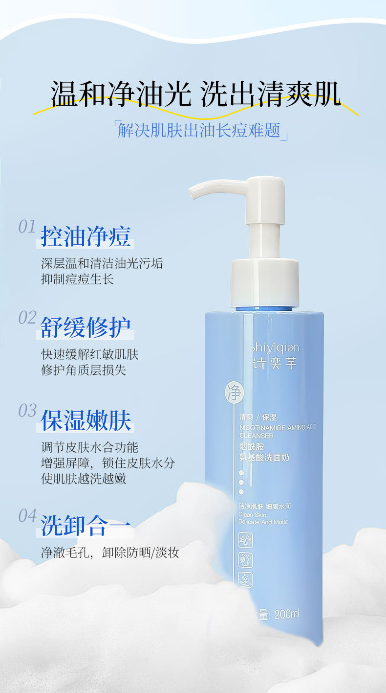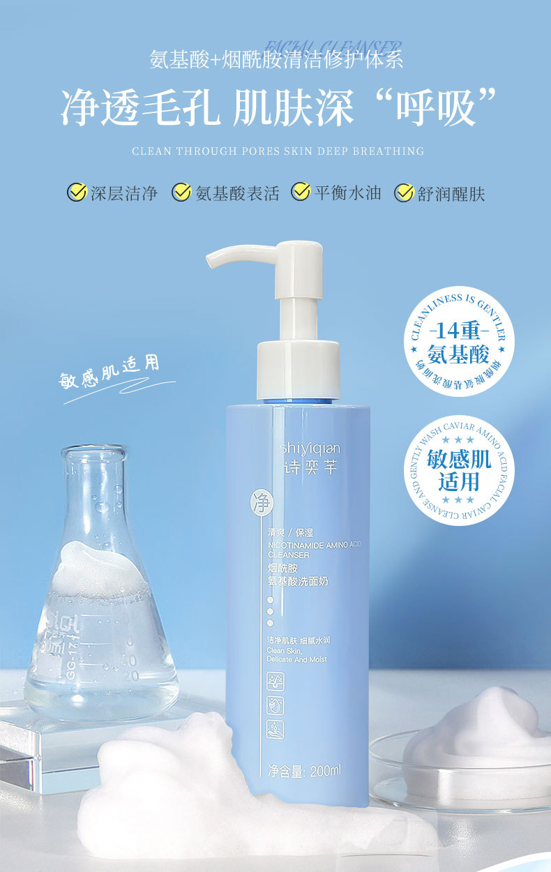 烟酰胺氨基酸洗面奶持久控油去黑头按压式补水保湿女士大牌洁面乳
