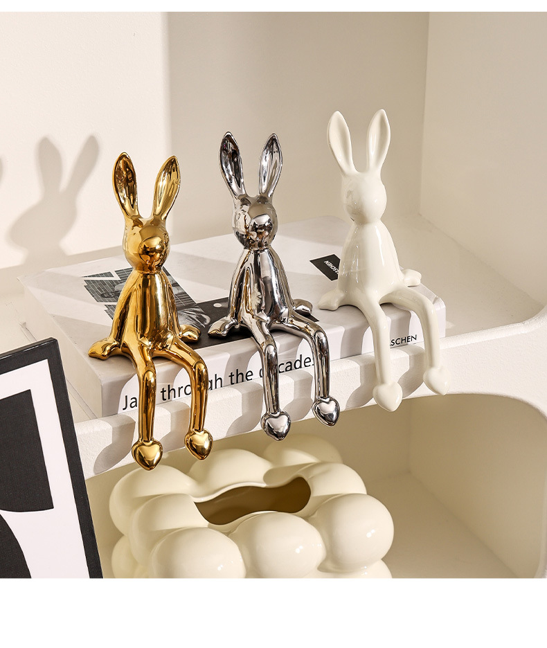 长耳兔摆件(白色+银色+金色)【送仿真书*2随机款】