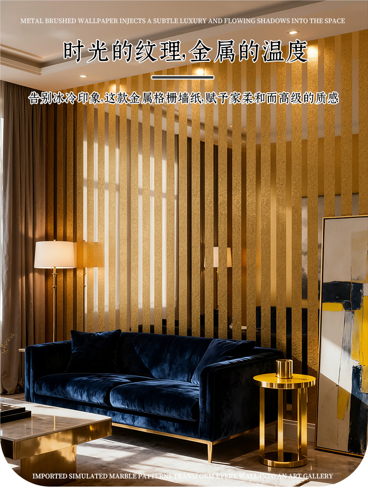 自粘墙贴仿格栅条纹金属膜贴纸客厅电视背景墙面装饰墙纸壁纸卷装