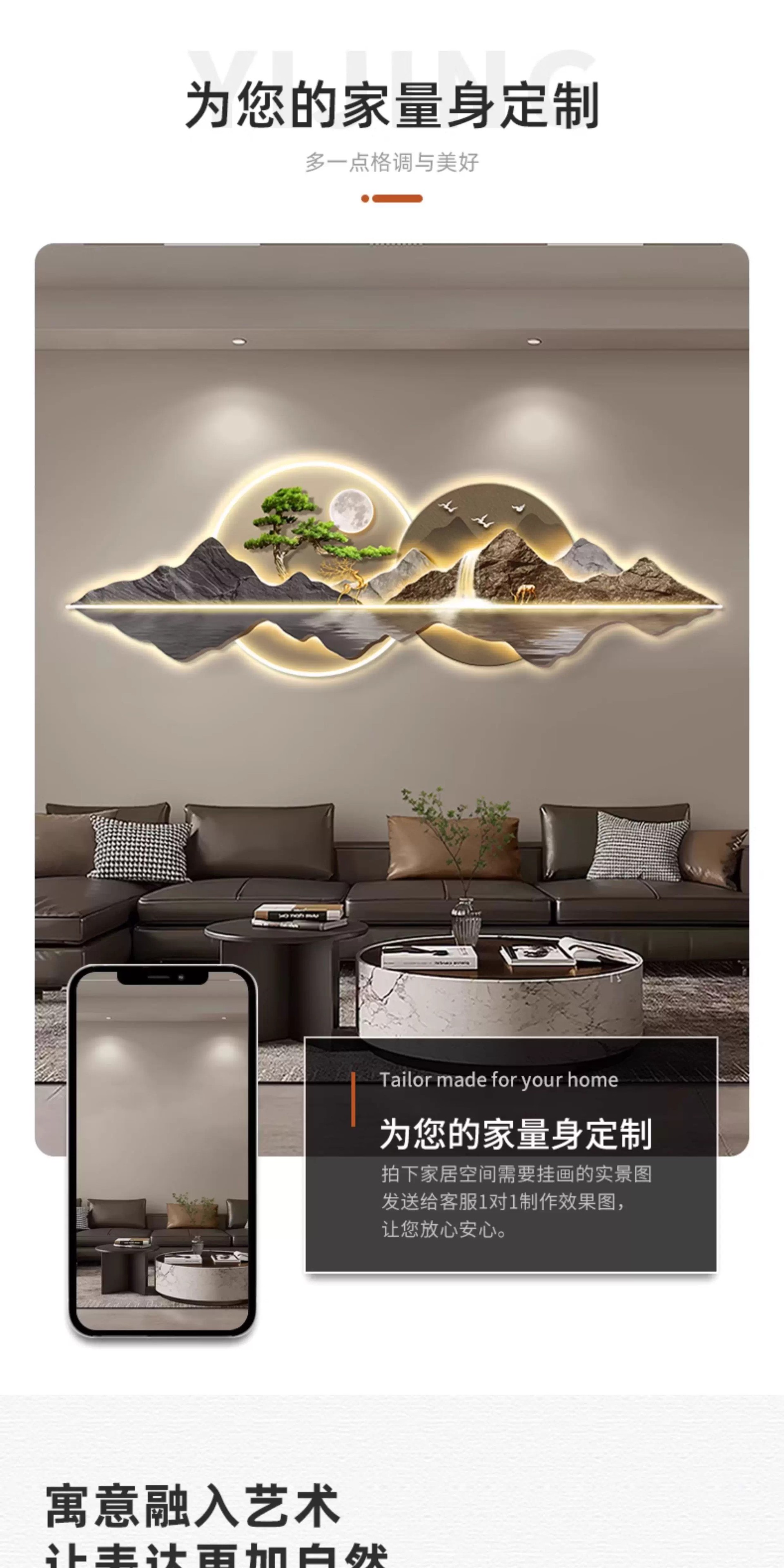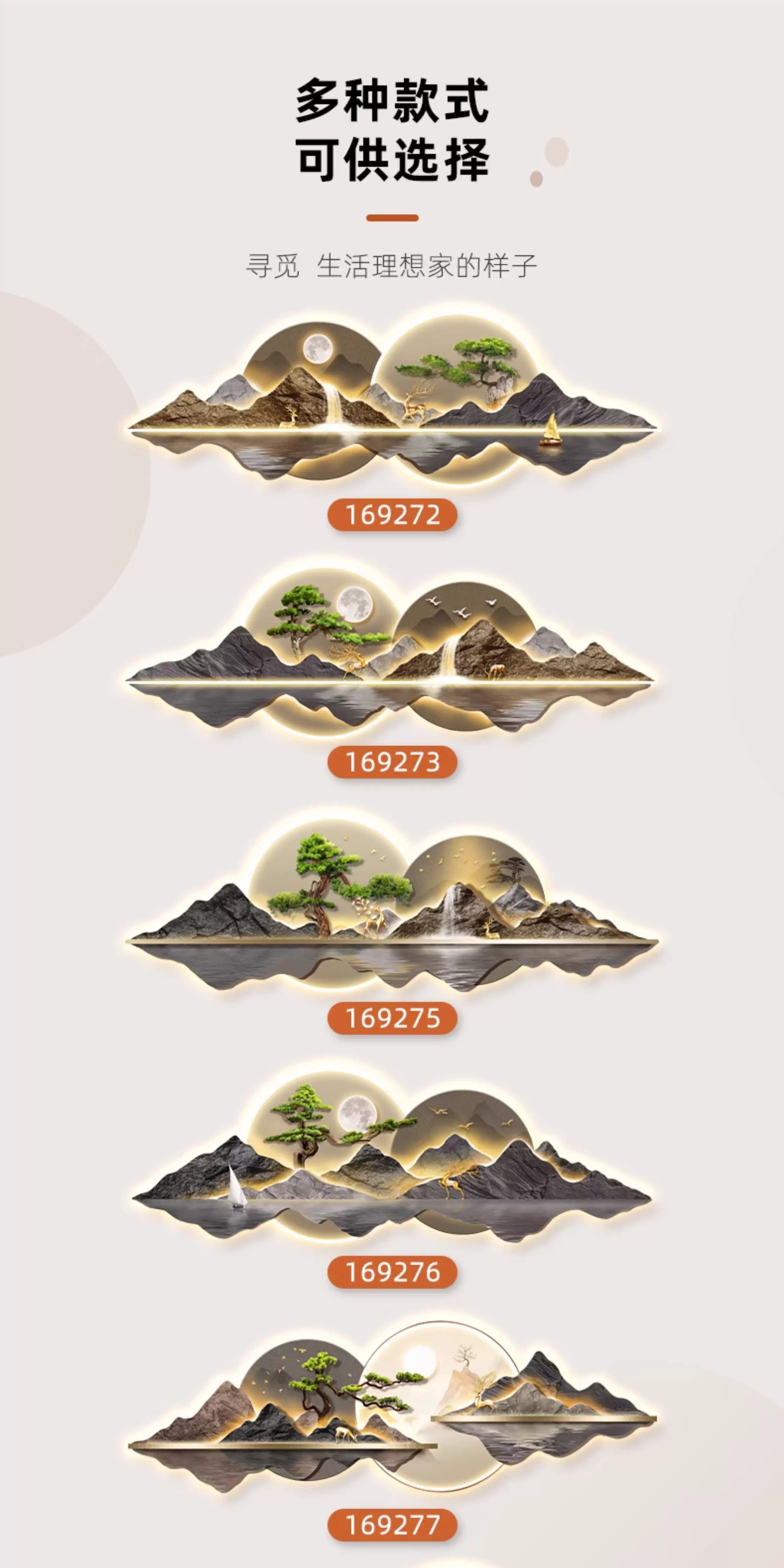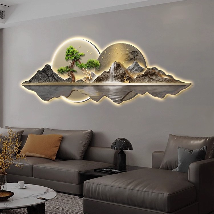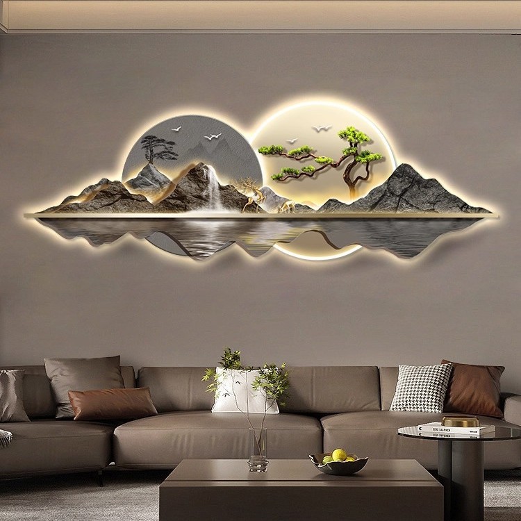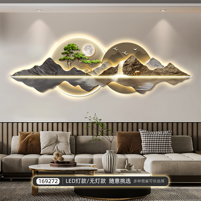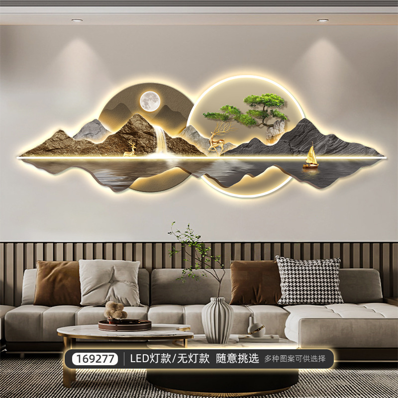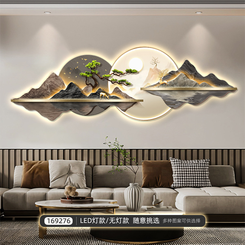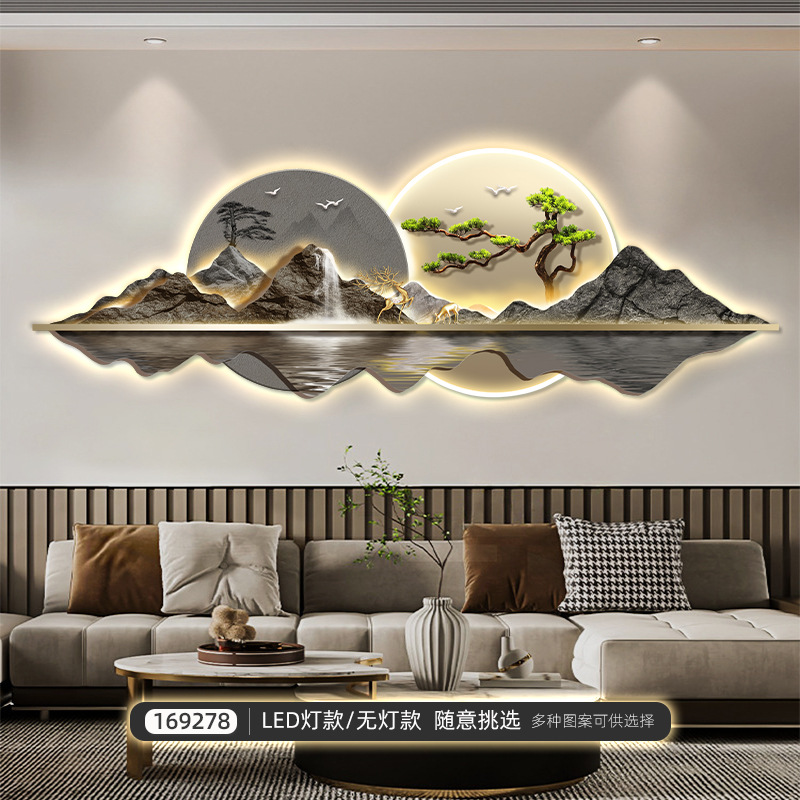 新中式客厅装饰画山水led灯画迎客松沙发背景墙挂画大气高档壁画