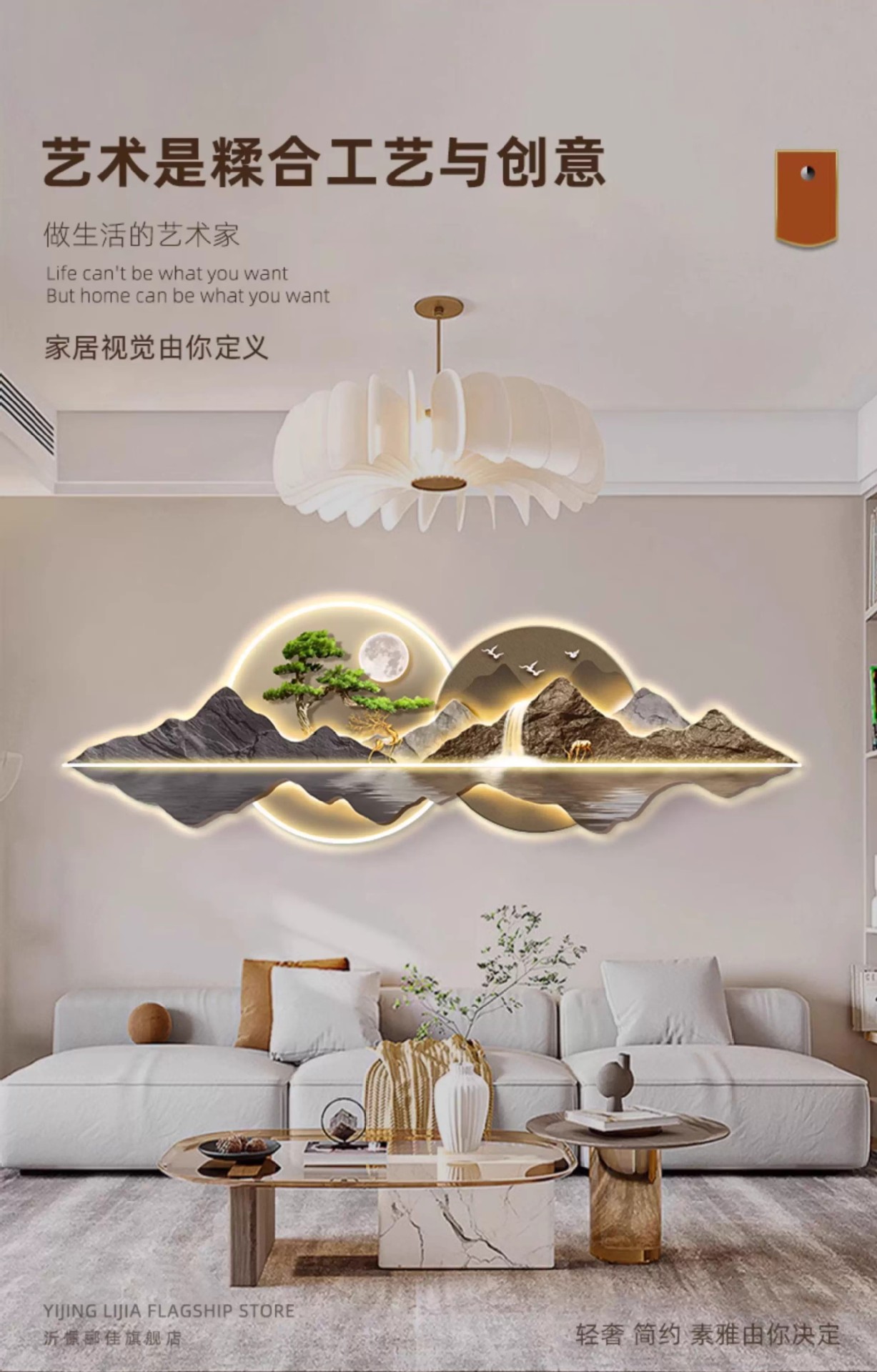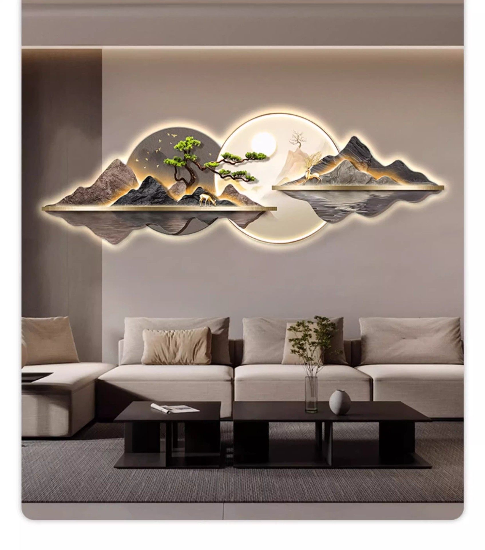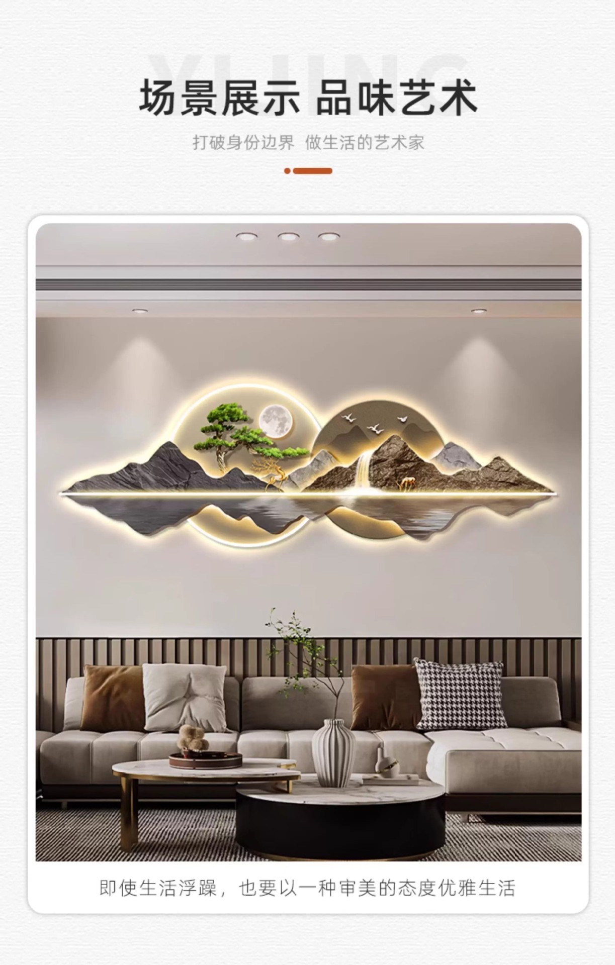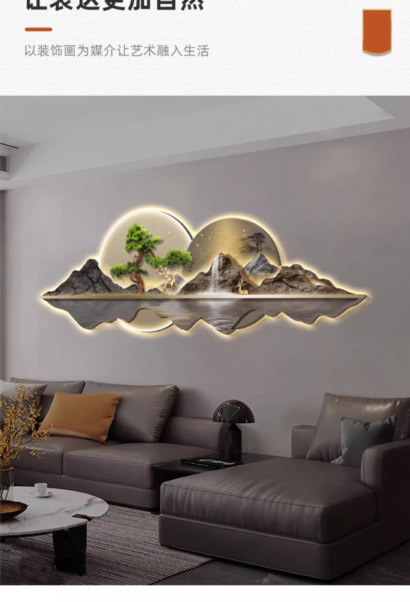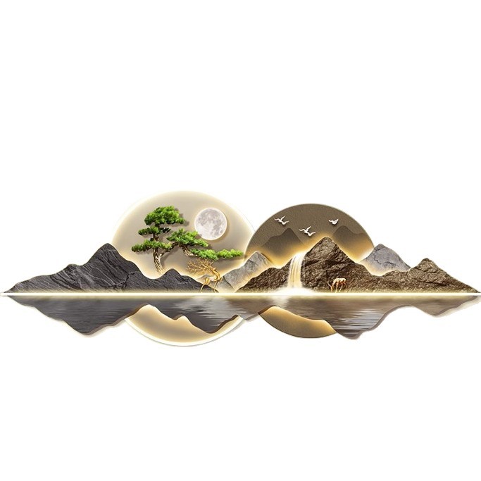 新中式客厅装饰画山水led灯画迎客松沙发背景墙挂画大气高档壁画