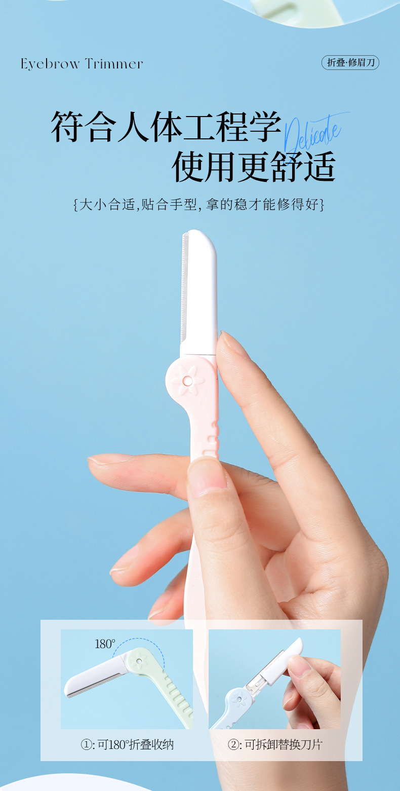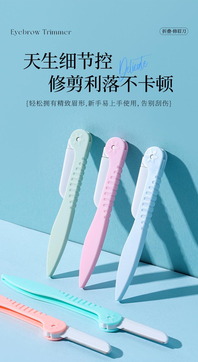 折叠微距款修眉刀美眉神器三支装修眉刀防护便携不锈钢修眉刀