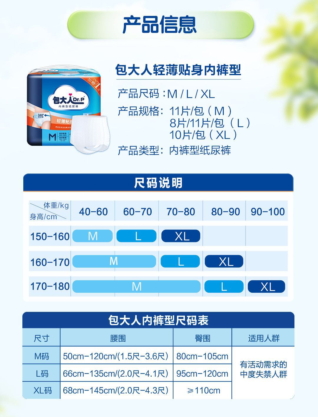 【包大人活动裤XL号】整箱6包共60片