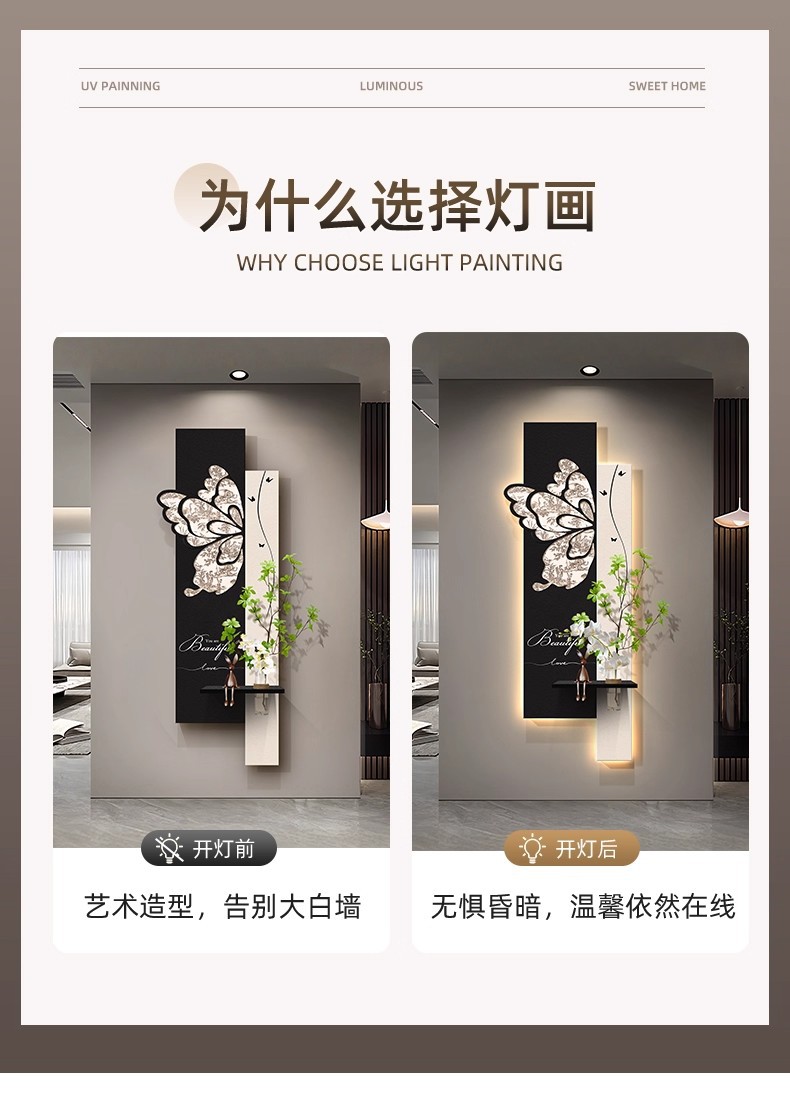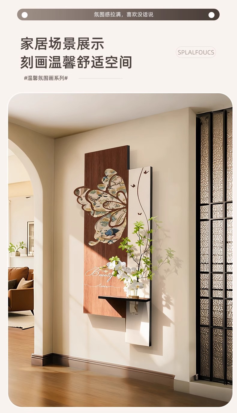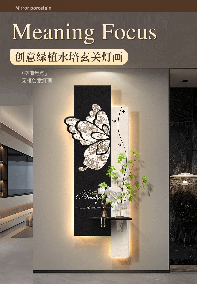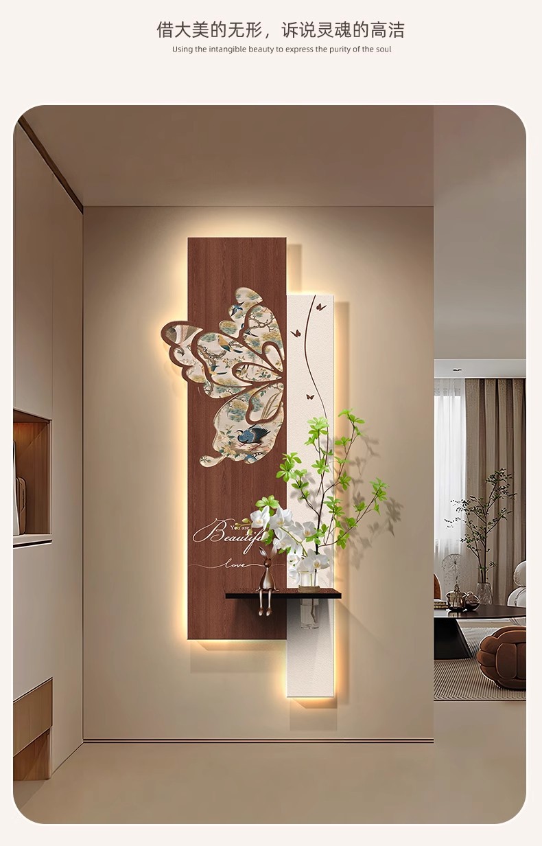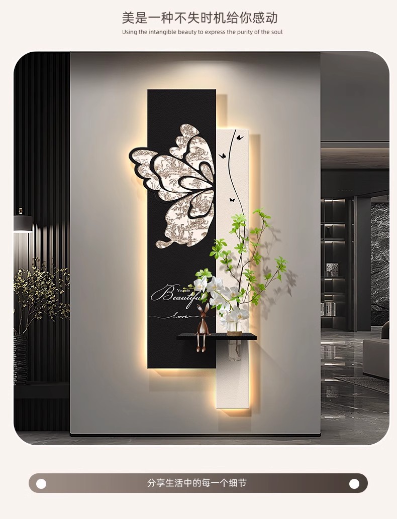 中古风玄关装饰画2026新款入户走廊过道挂画高级感蝴蝶灯光壁画