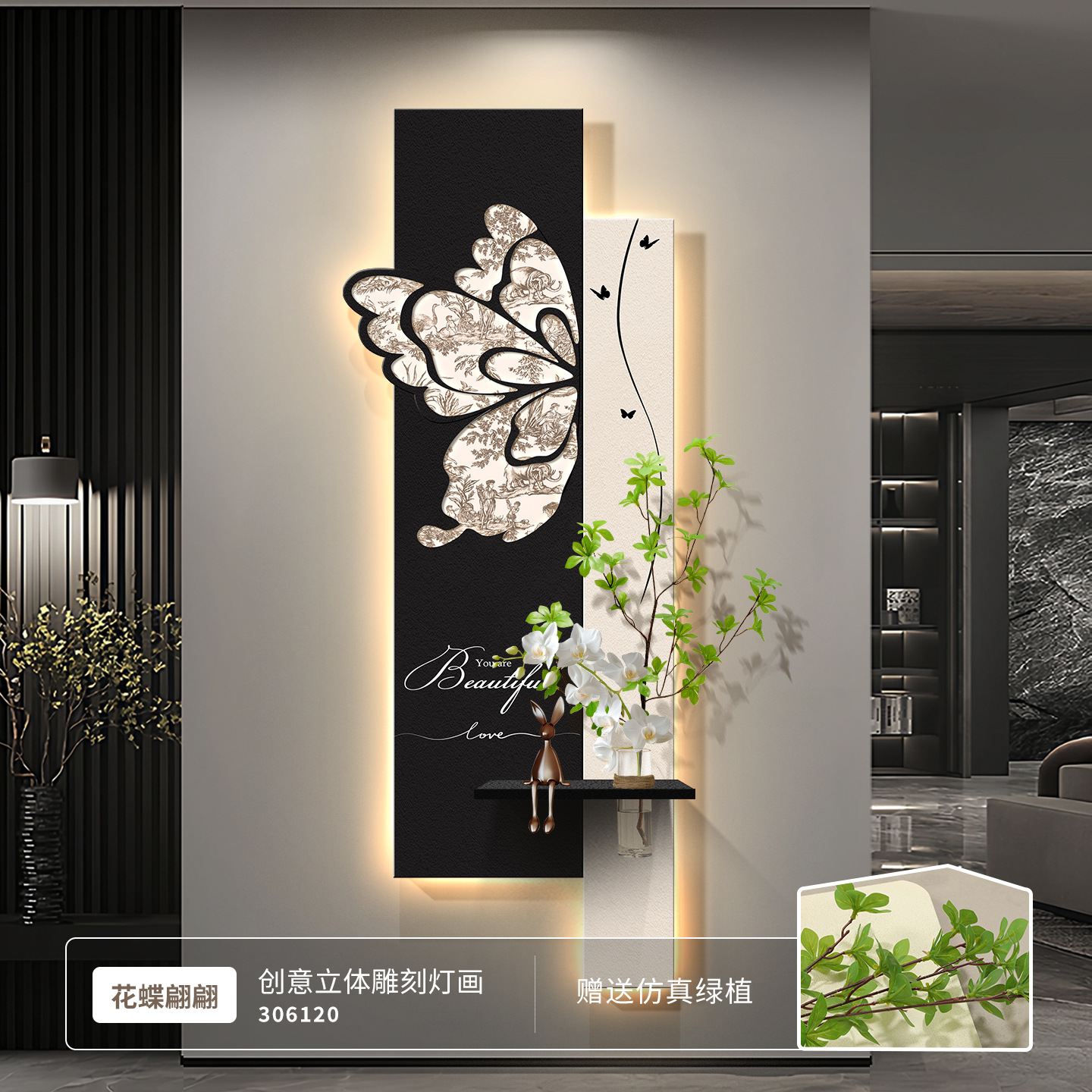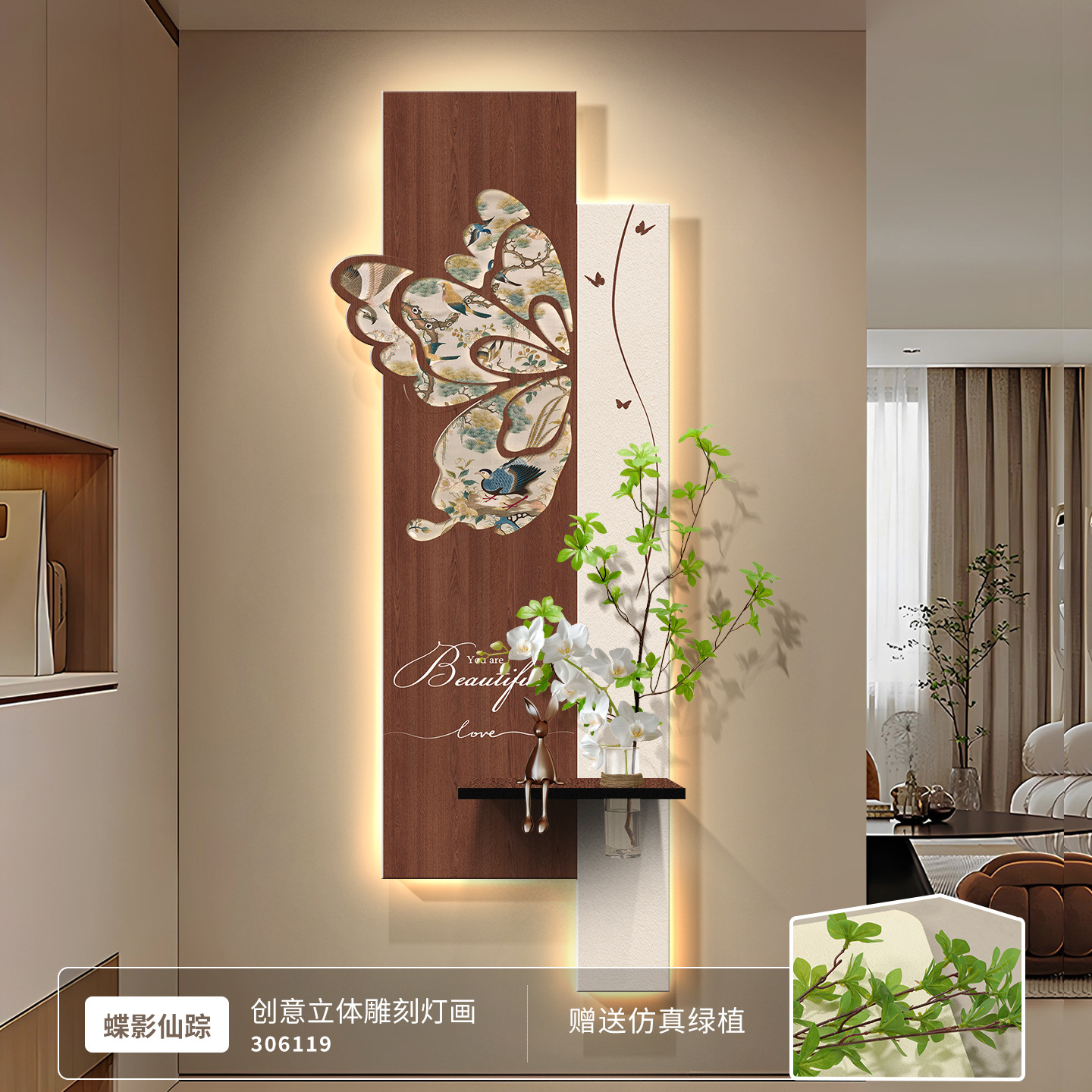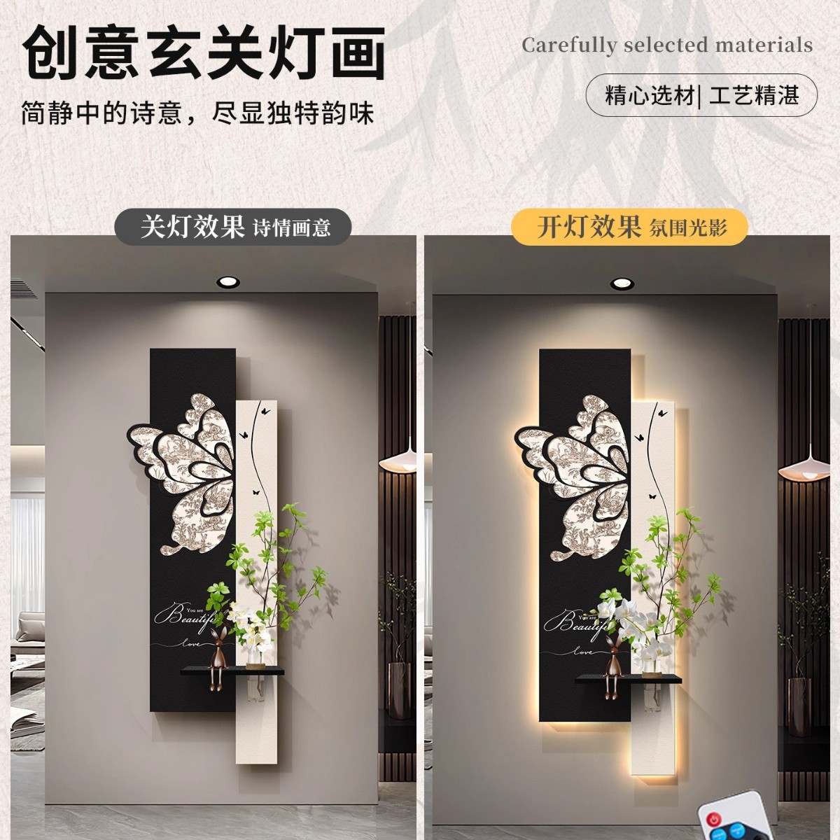 中古风玄关装饰画2026新款入户走廊过道挂画高级感蝴蝶灯光壁画