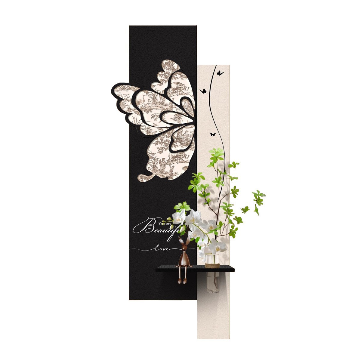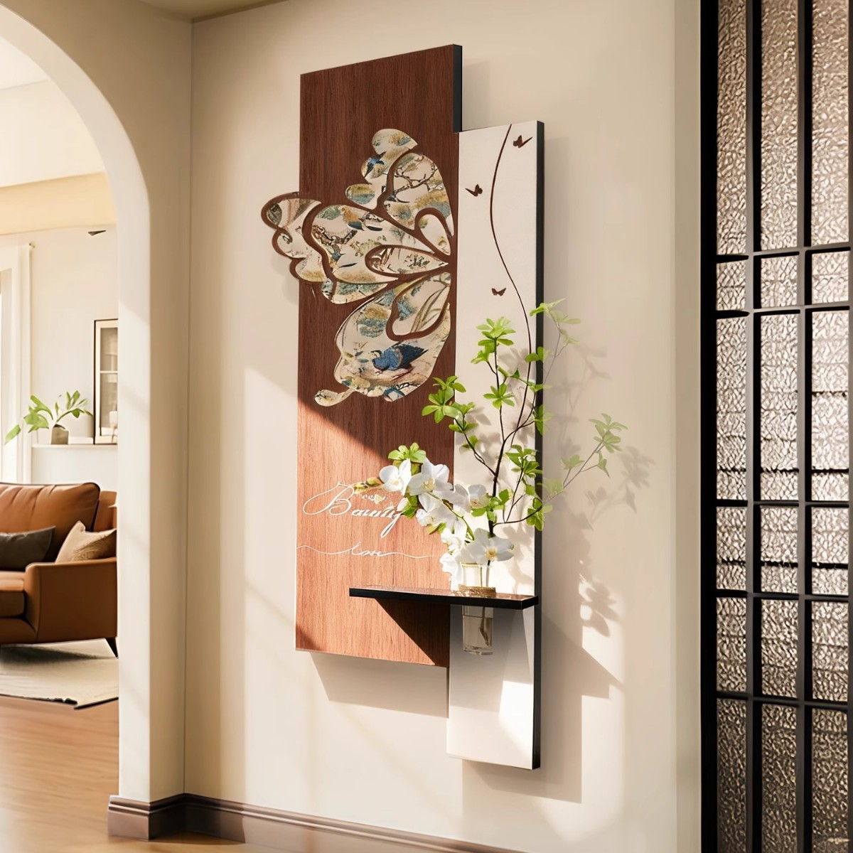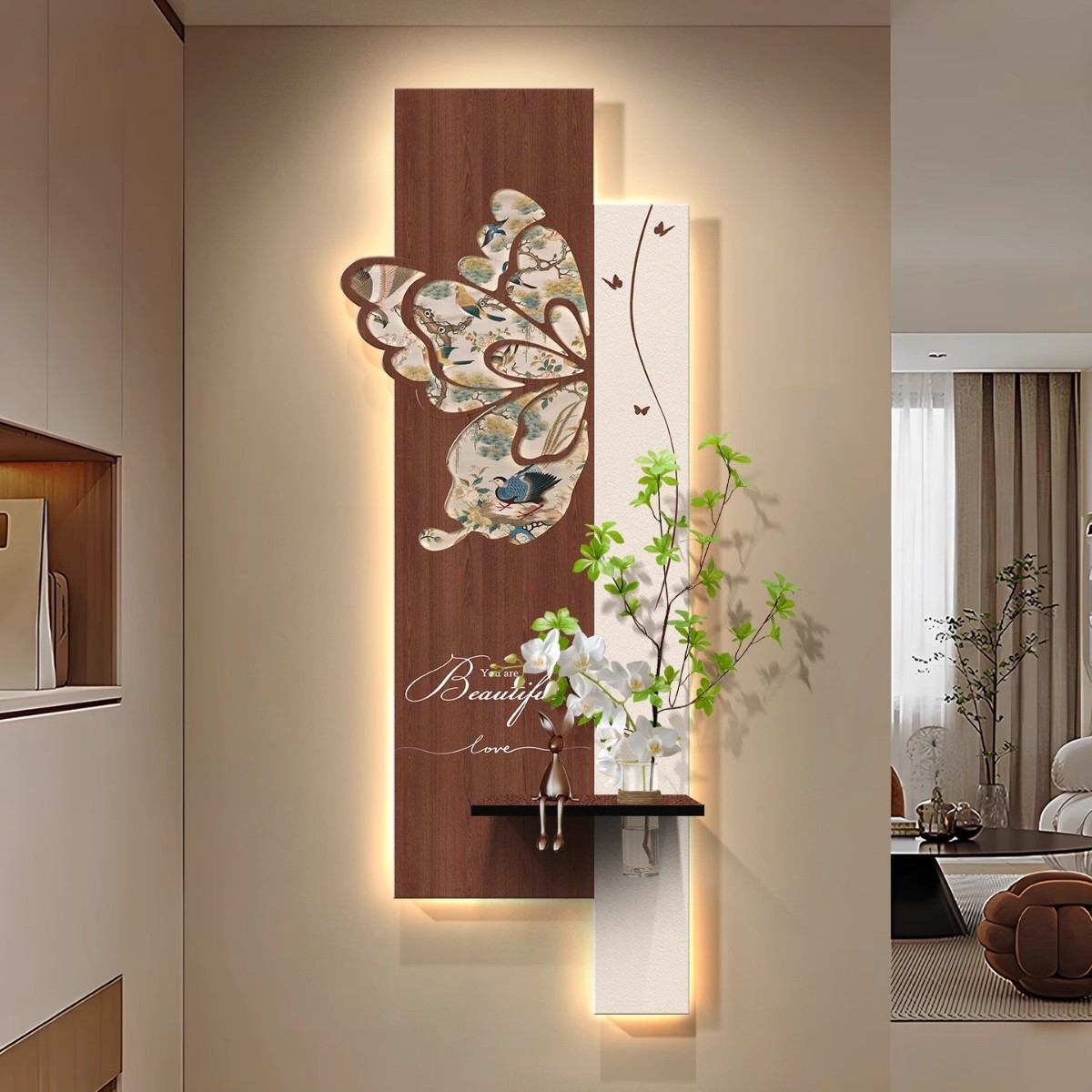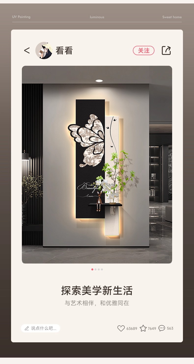 中古风玄关装饰画2026新款入户走廊过道挂画高级感蝴蝶灯光壁画