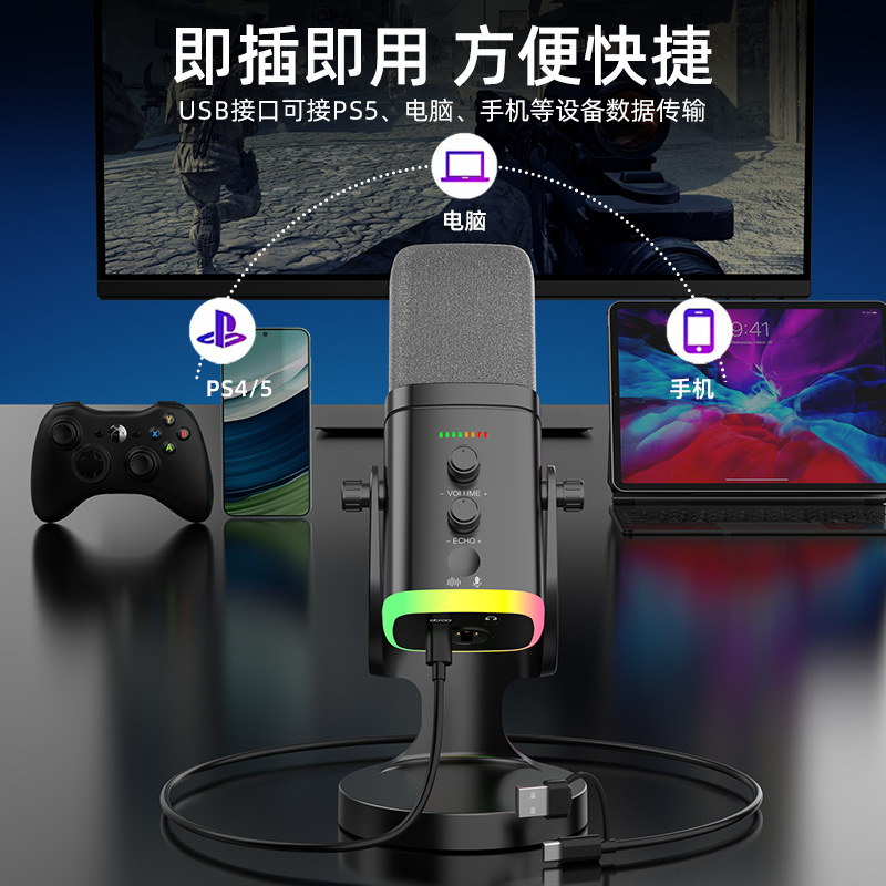 主播麦克风USB电容动圈麦克风电脑台式笔记本录音配音游戏直播ps5
