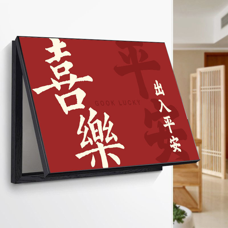 中式横版挂画电表箱装饰画开关遮挡电闸配电箱壁画客厅