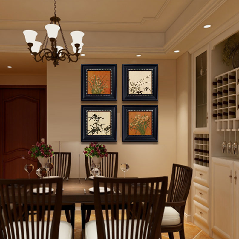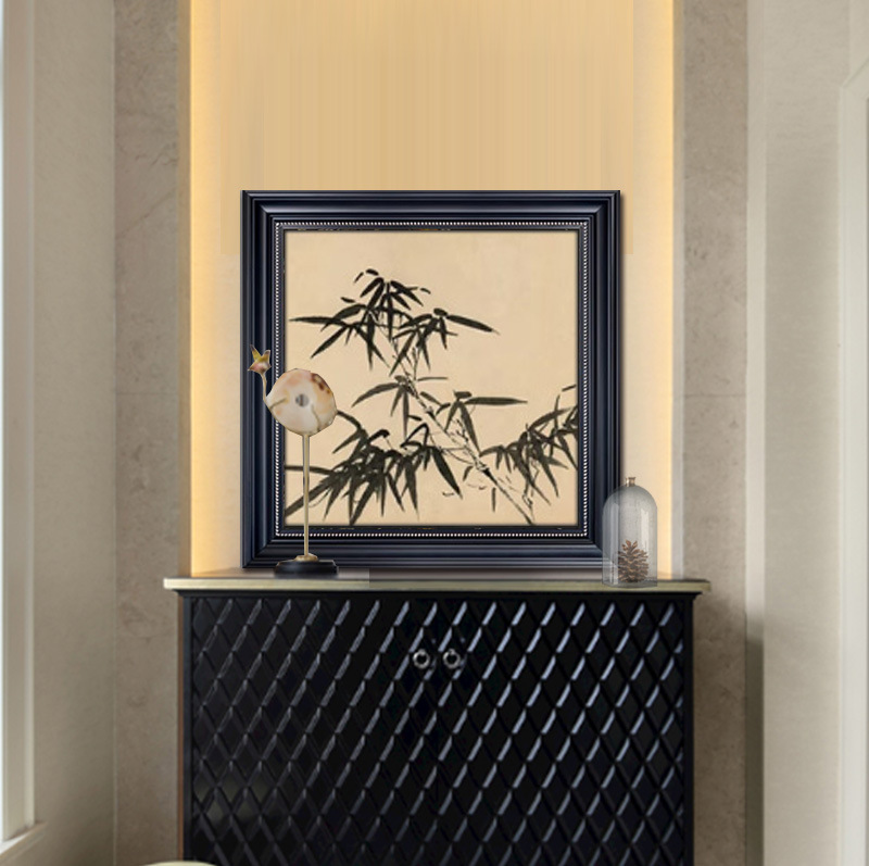 中古风挂画法式玄关装饰画正对门高级感复古竹子餐厅客厅美式壁画