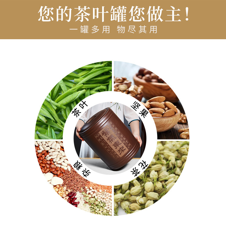 紫砂茶叶罐大号中式普洱茶饼醒茶罐家用陶瓷储存密封罐子