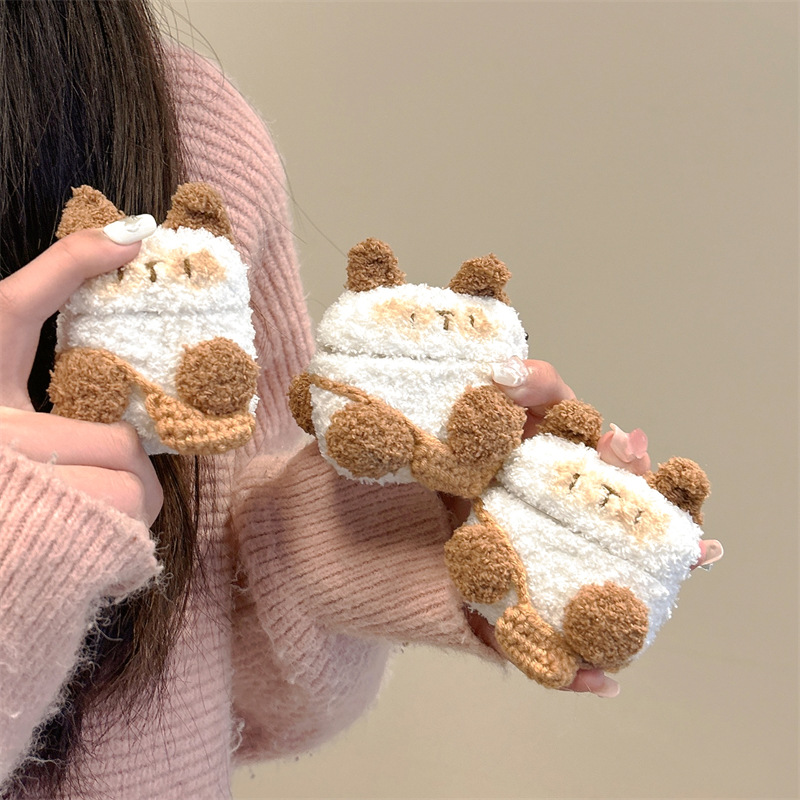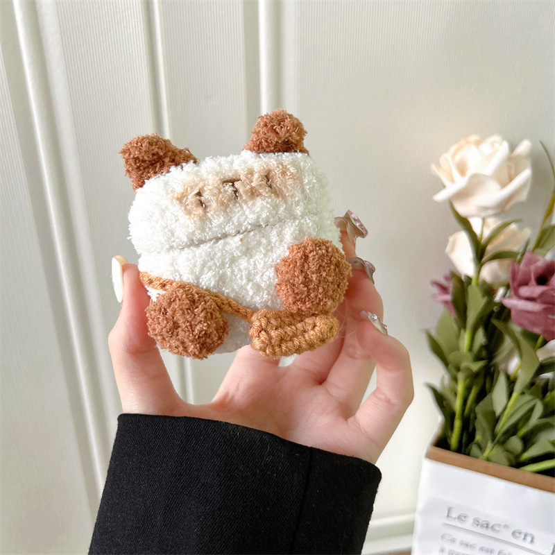 可爱针织背包白猫咪AirPodspro3苹果蓝牙耳机套2/4代保护壳适用