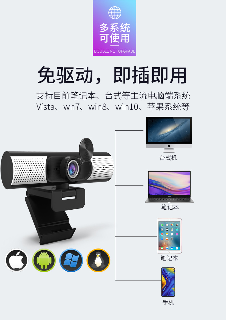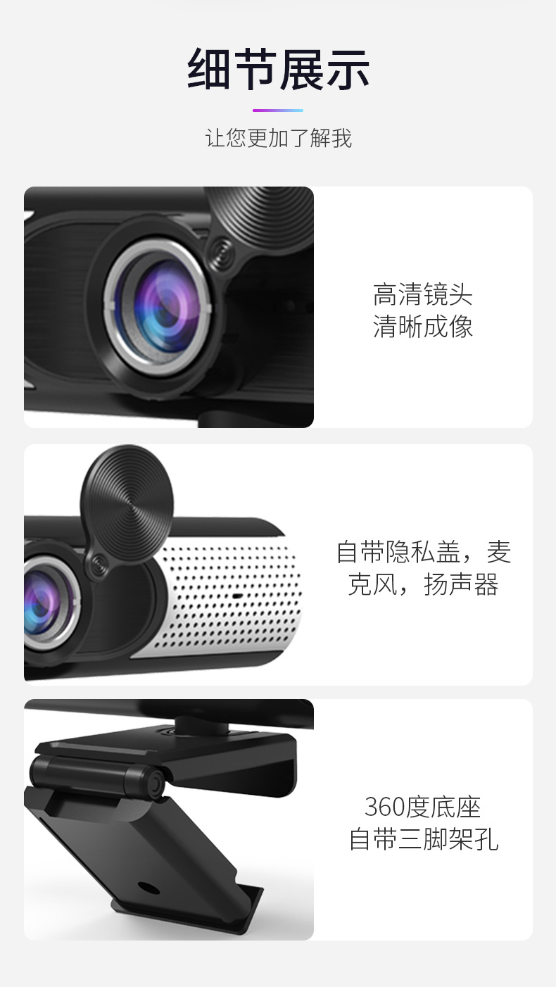高清直播摄像头台式电脑笔记本网课usb麦克风家用桌面摄像头