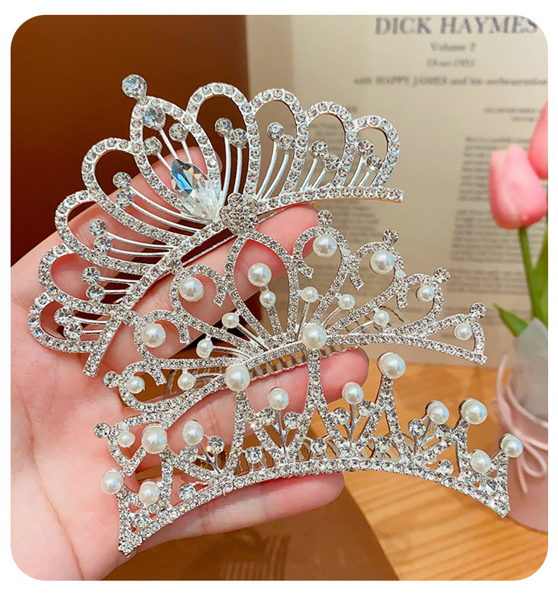 公主皇冠头饰儿童插梳女童珍珠水钻发夹生日演出饰品王冠发夹发饰