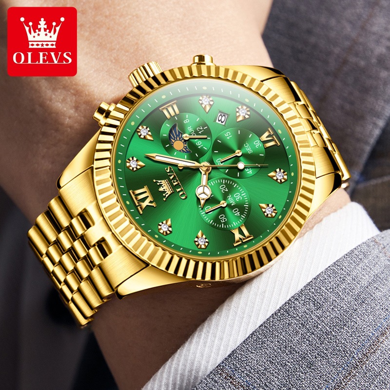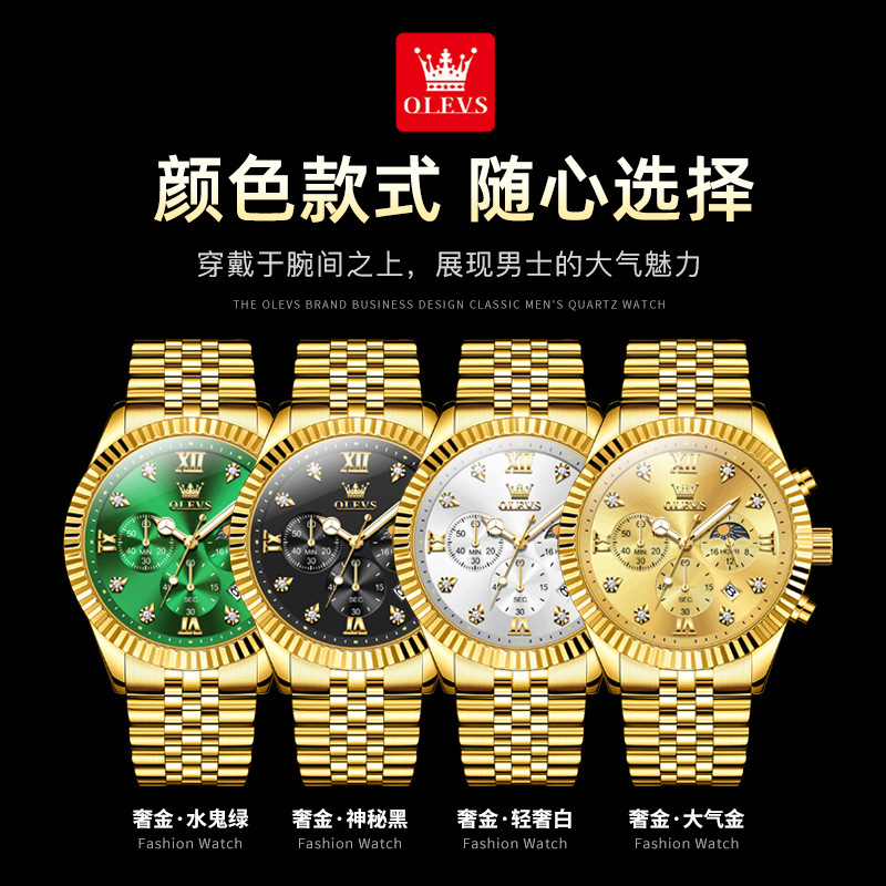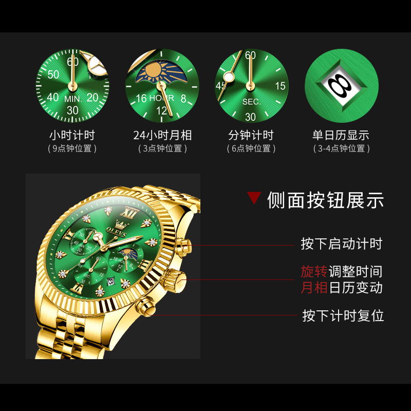 欧利时OLEVS品牌手表批发石英表劳运动计时绿水鬼手表男士男表