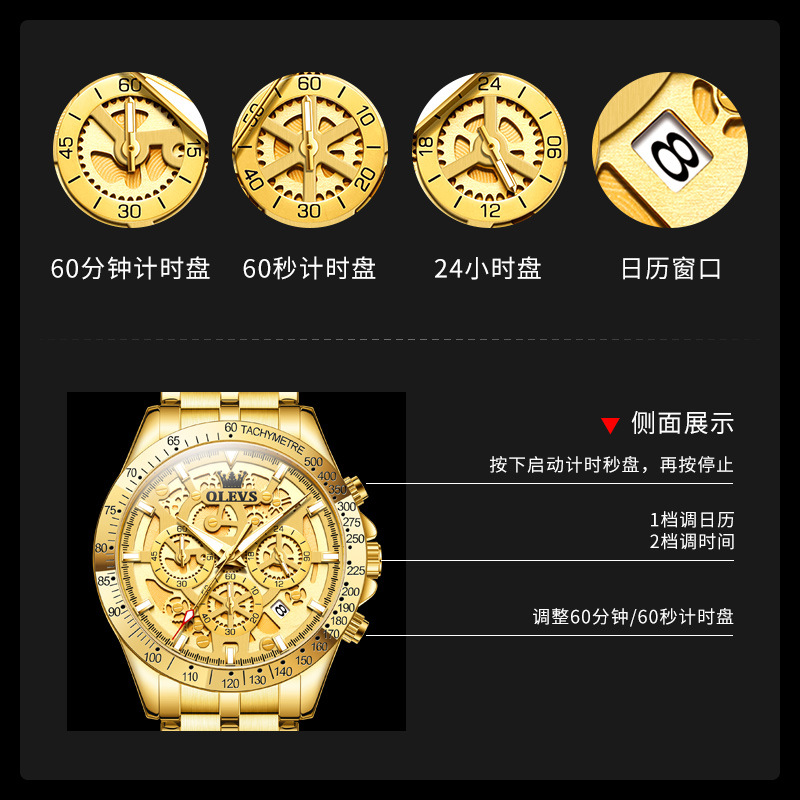 欧利时品牌手表外贸大表盘东南亚石英表运动计时学生手表男士男表