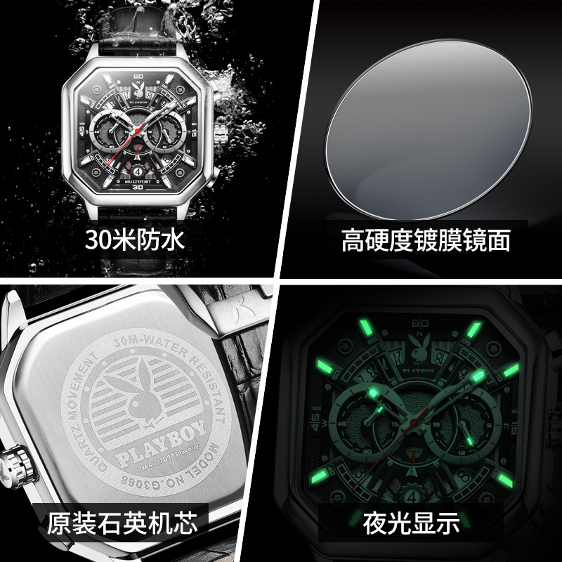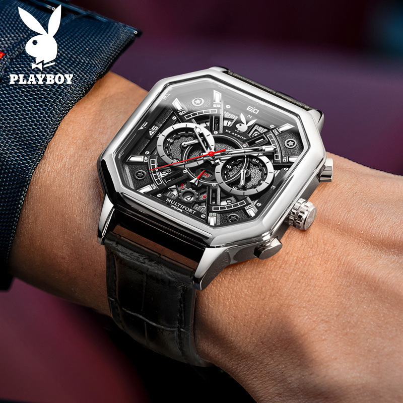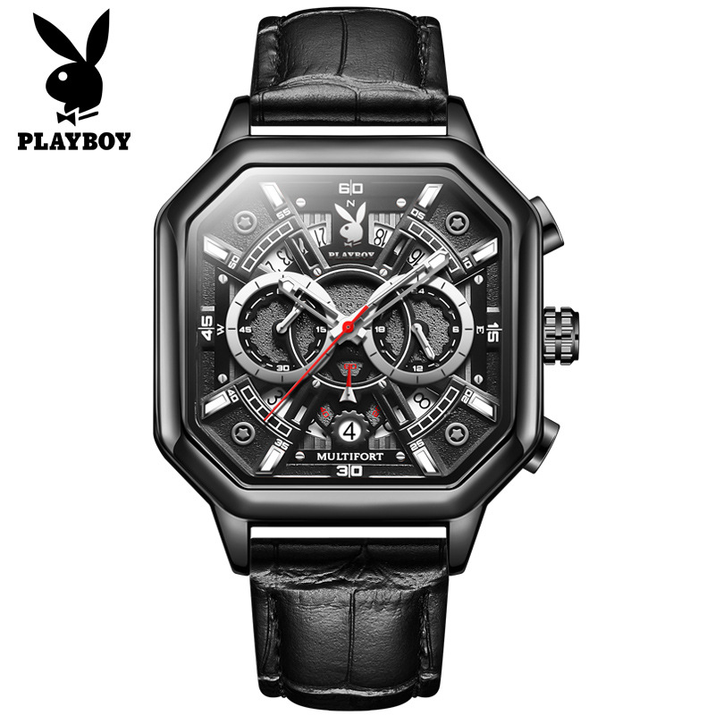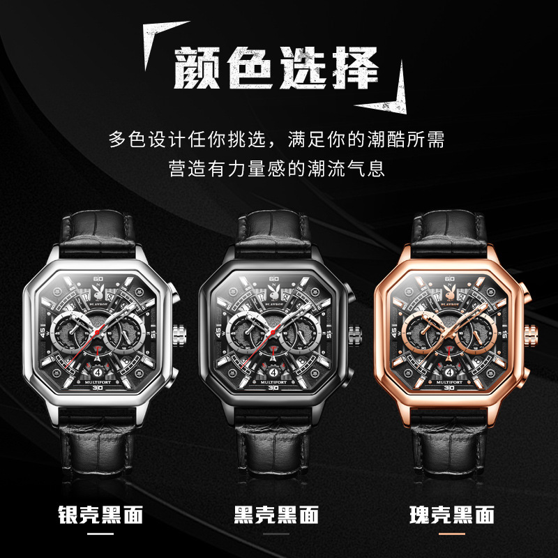 花花公子PLAYBOY品牌手表多功能石英表外贸镂空电子学生男士手表
