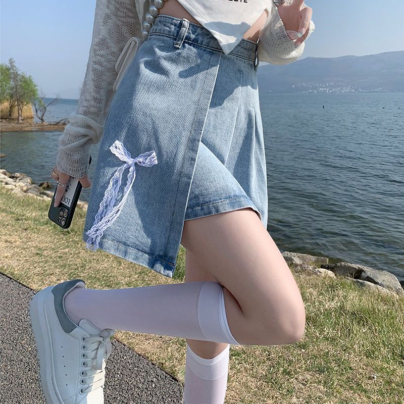 牛仔短裙女夏季新款高腰百褶裙大码设计感小众包臀A字半身裙