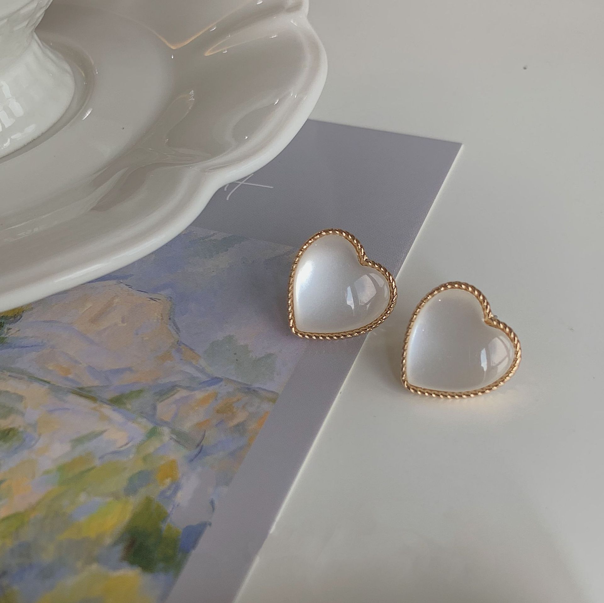 「白月光」复古宫廷猫眼石爱心耳钉无耳洞耳夹耳饰女温柔优雅精致