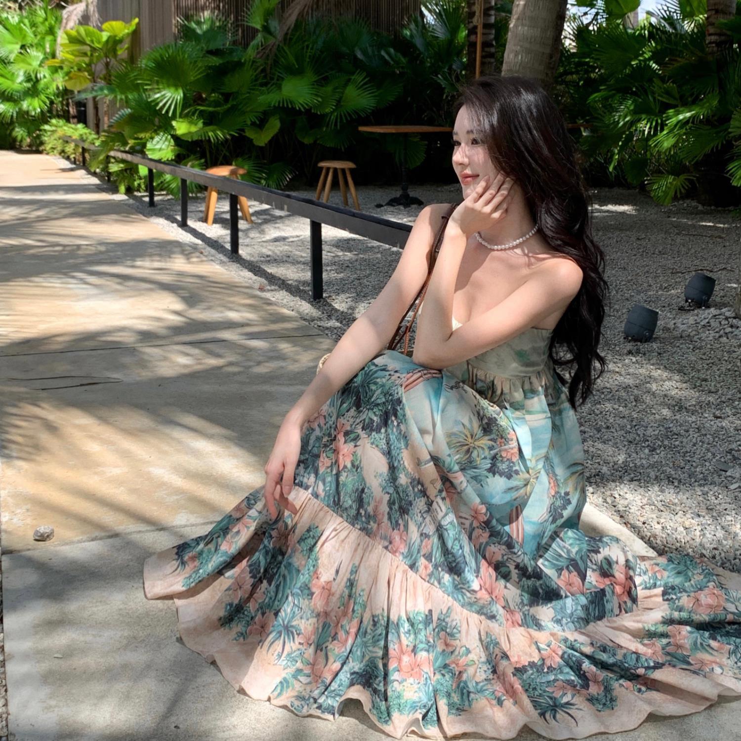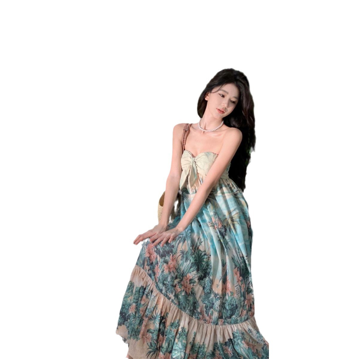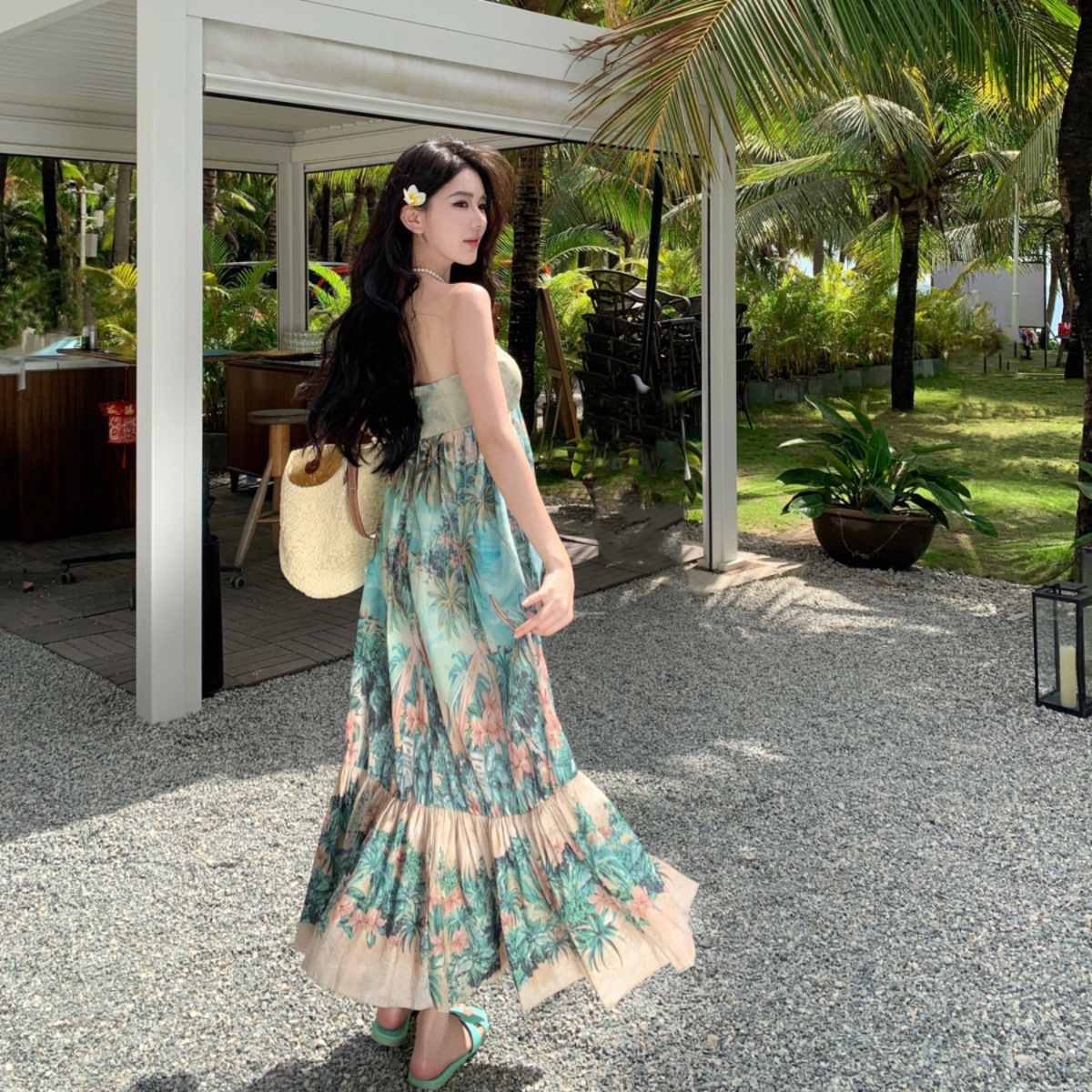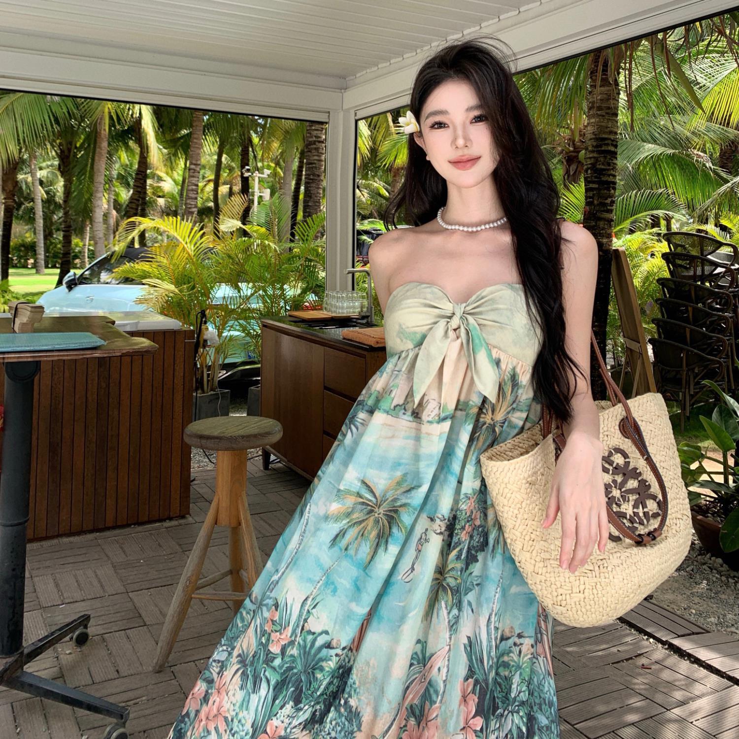 一字肩抹胸连衣裙女春季海边度假长裙性感气质纯欲露肩裙子