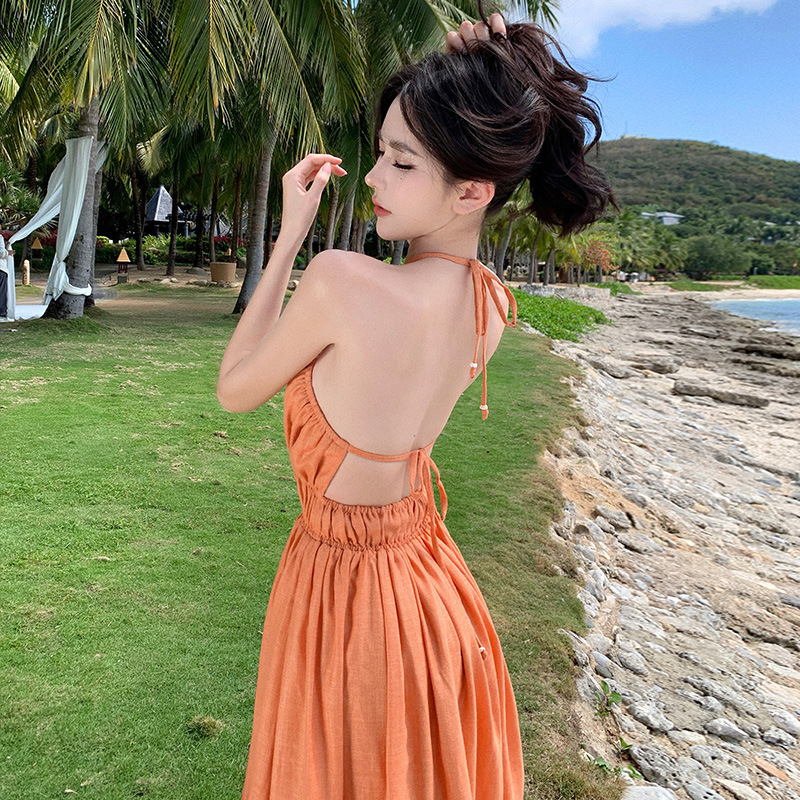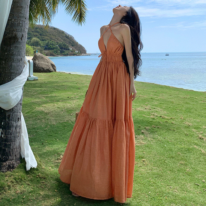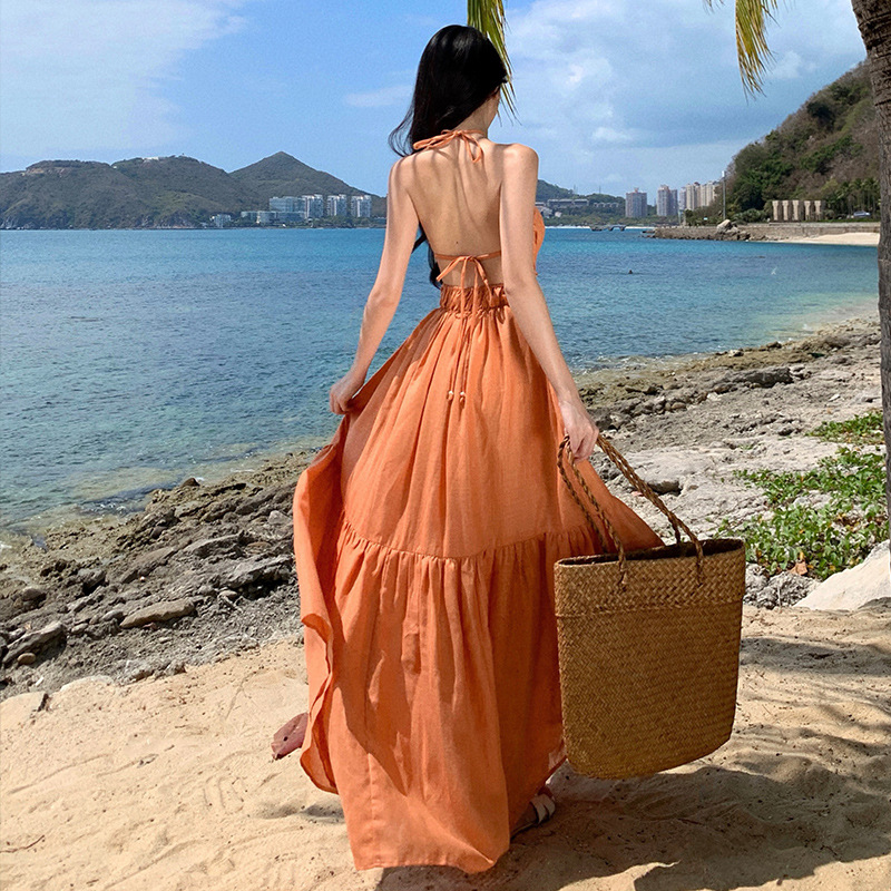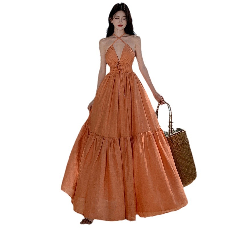 性感风纯欲宽松层层荷叶边雪纺加大显瘦度假连衣裙女