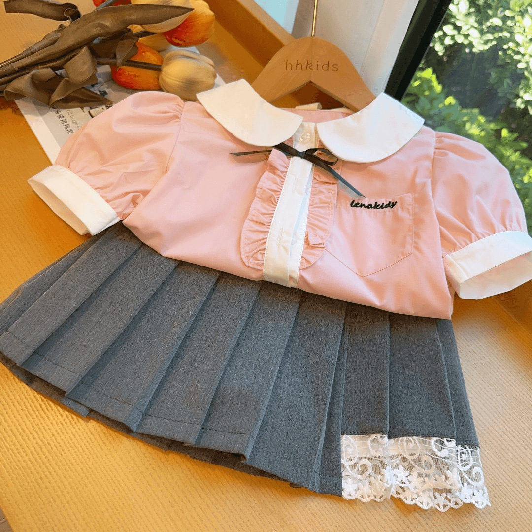 新品儿童中小童蝴蝶结韩系纯欲少女jk风套装2025学院风两件套