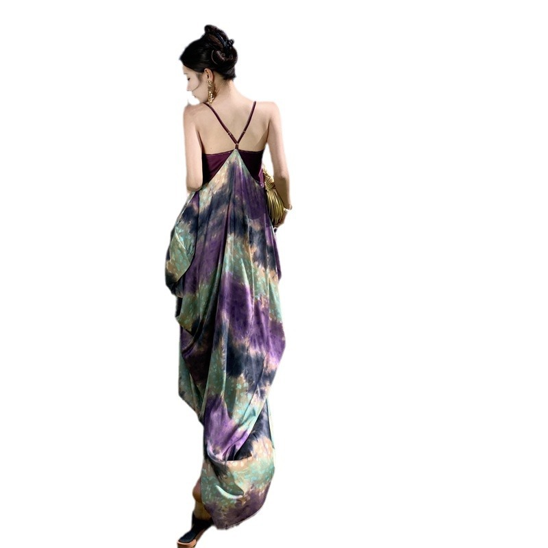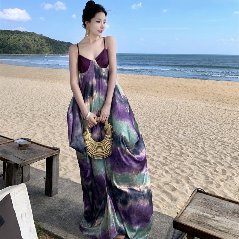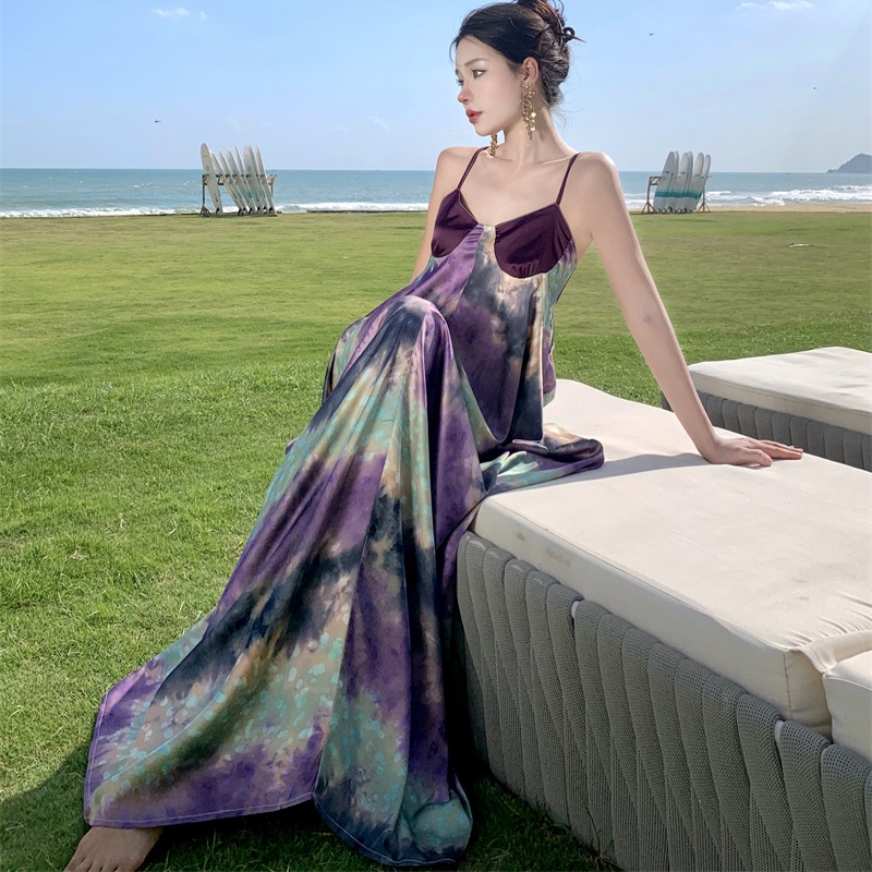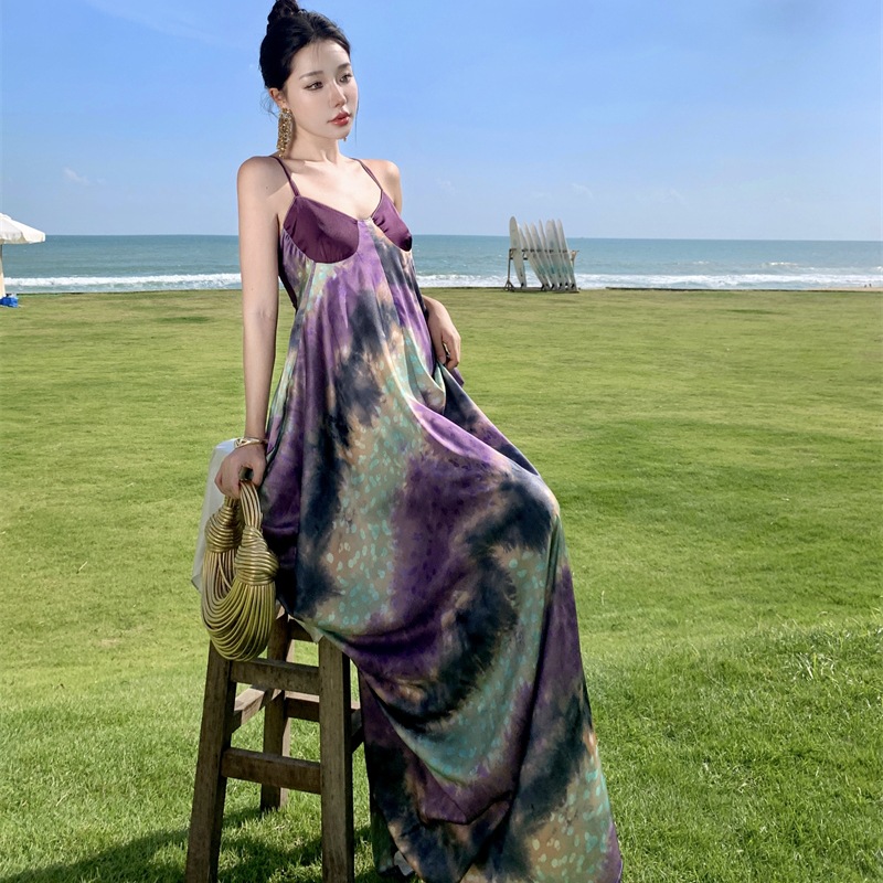 夏季新款水墨画小众高级气质显瘦吊带连衣裙女海边度假裙
