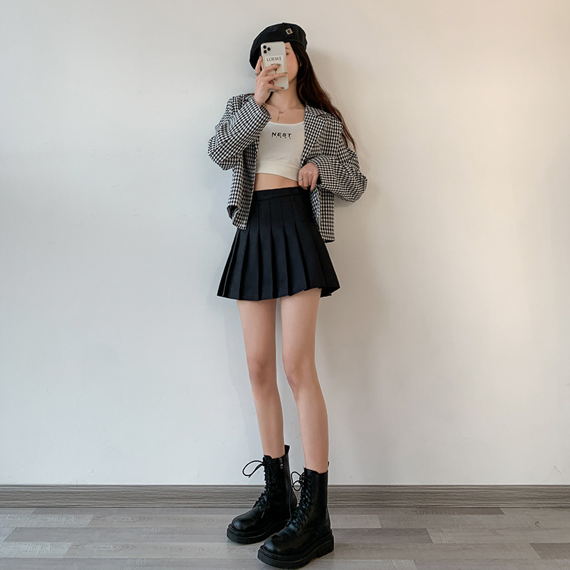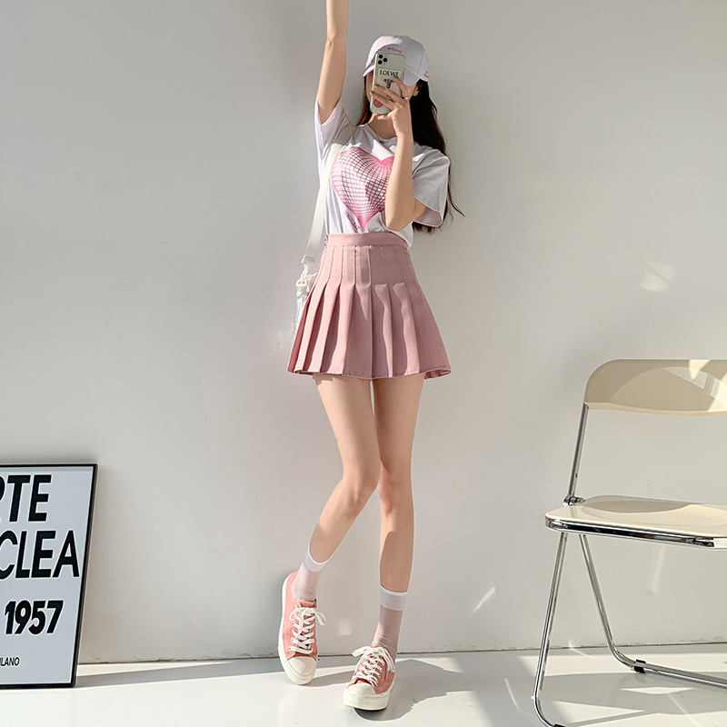 粉色百褶裙女半身裙春夏新款高腰百搭显瘦大码小个子学院a字短裙