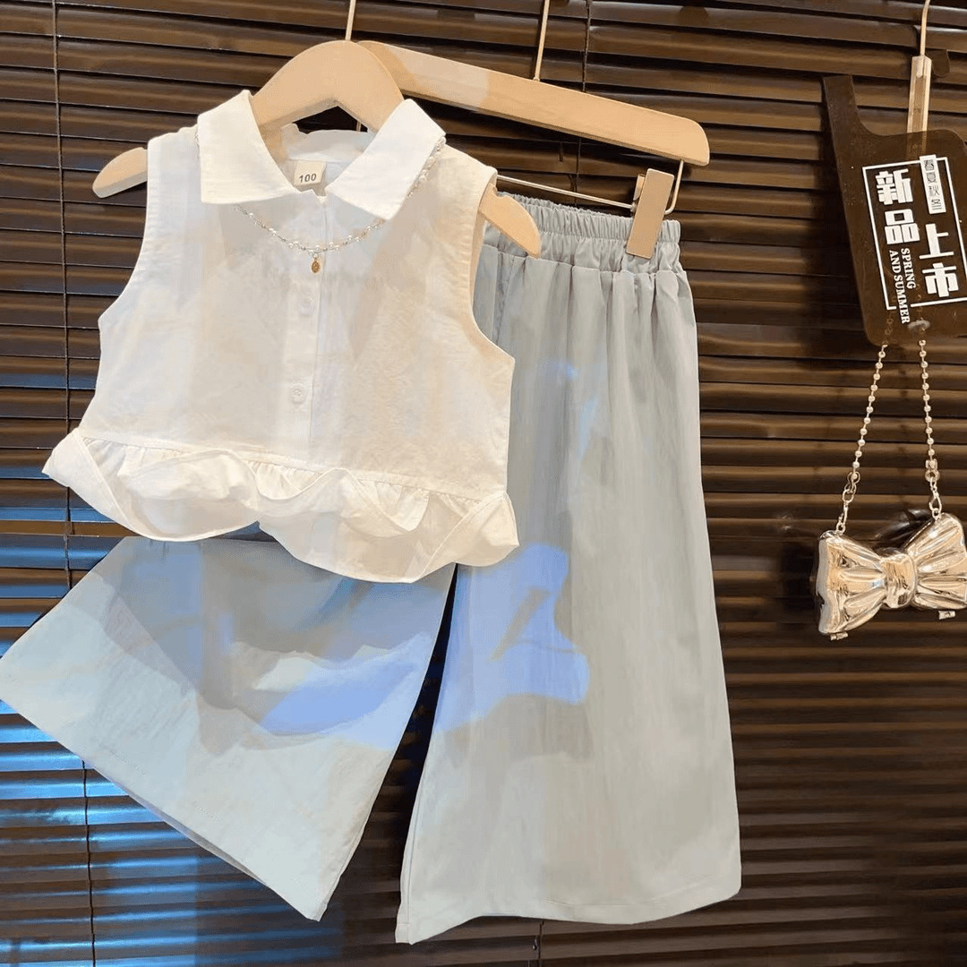 新品女童夏装套装2025童装女宝韩范无袖上衣阔腿裤中小童两件套