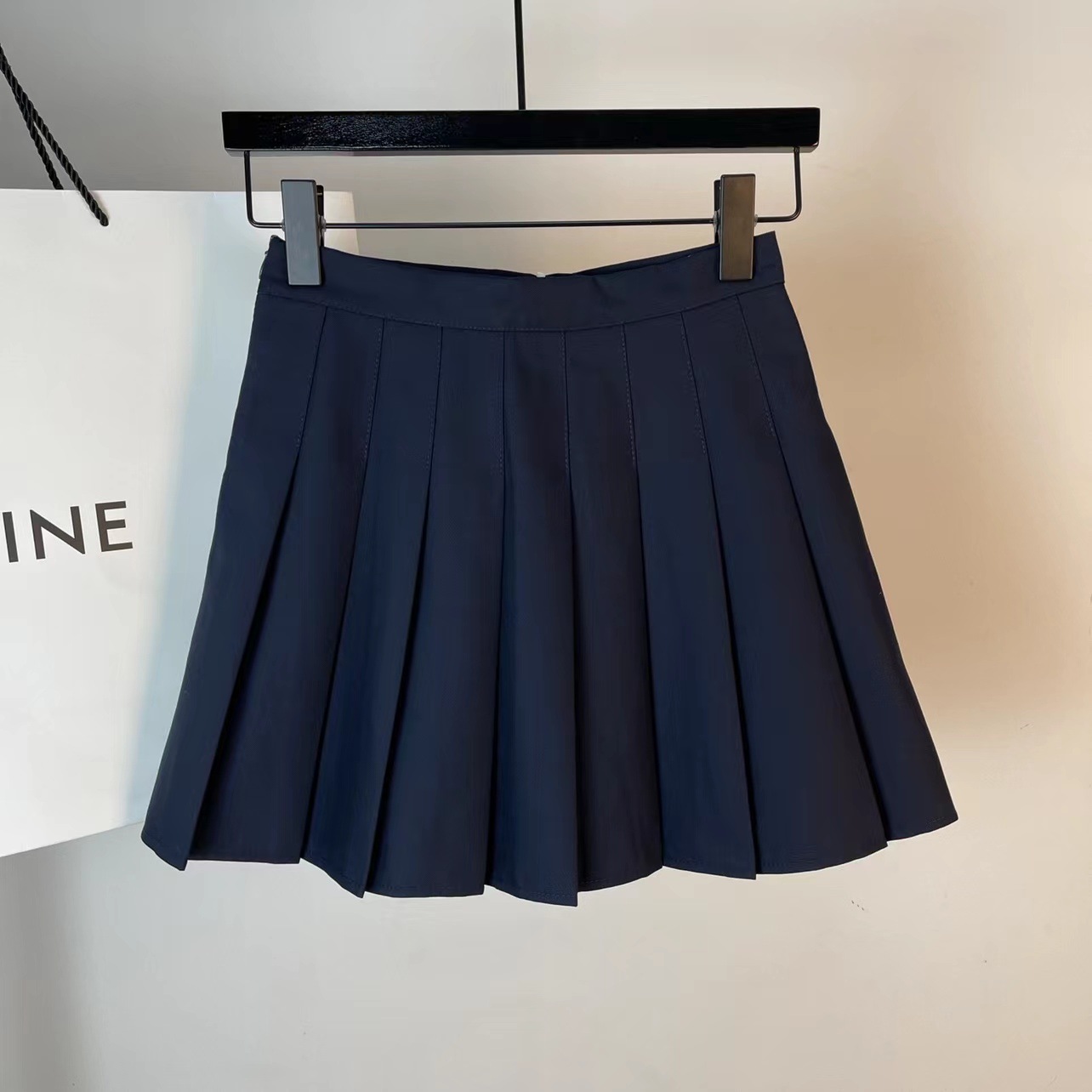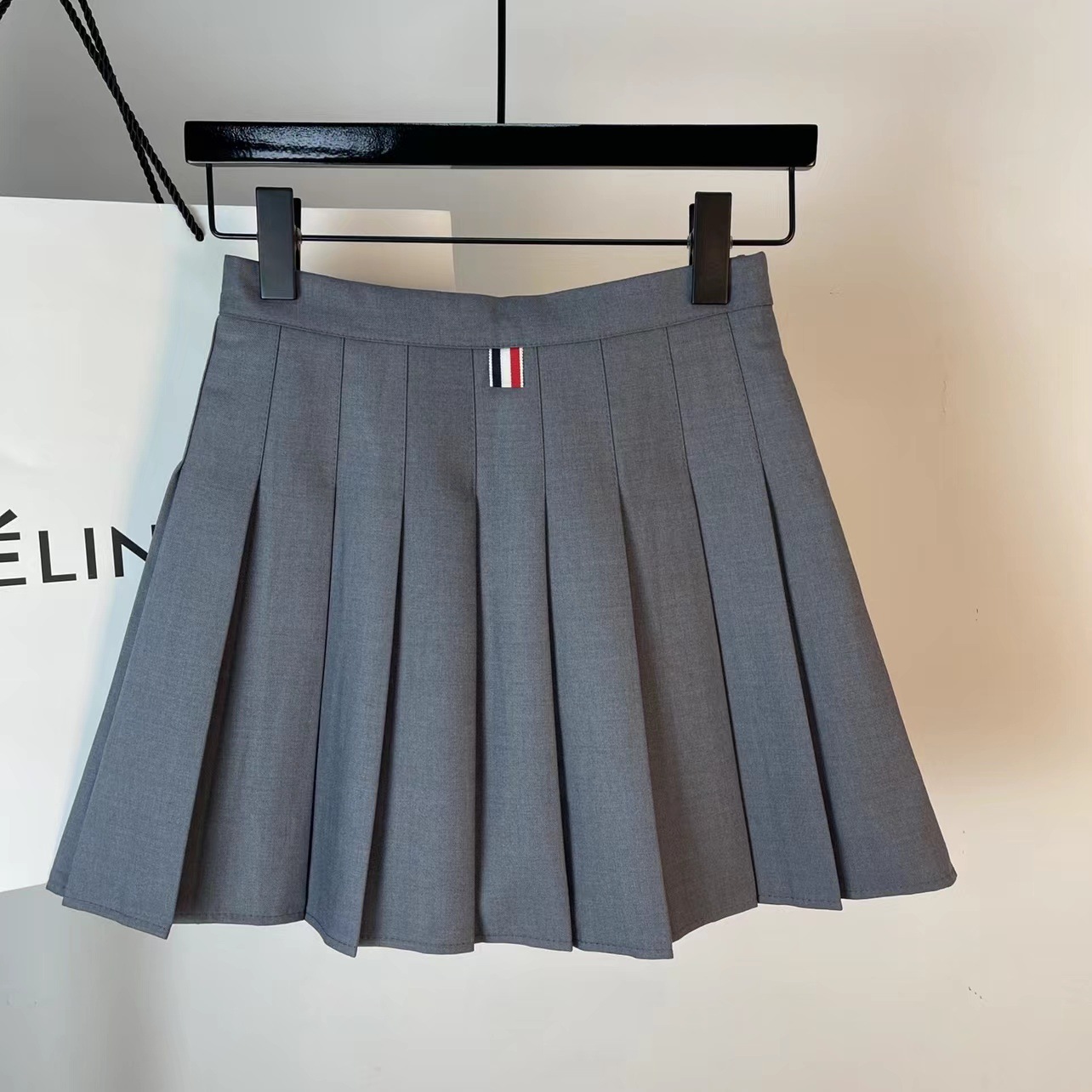 西装料TB灰色百褶裙A字高腰显瘦百搭短裙藏青色半身裙裤裙女春夏