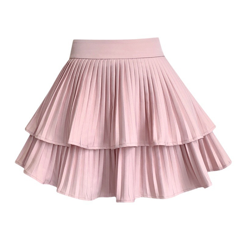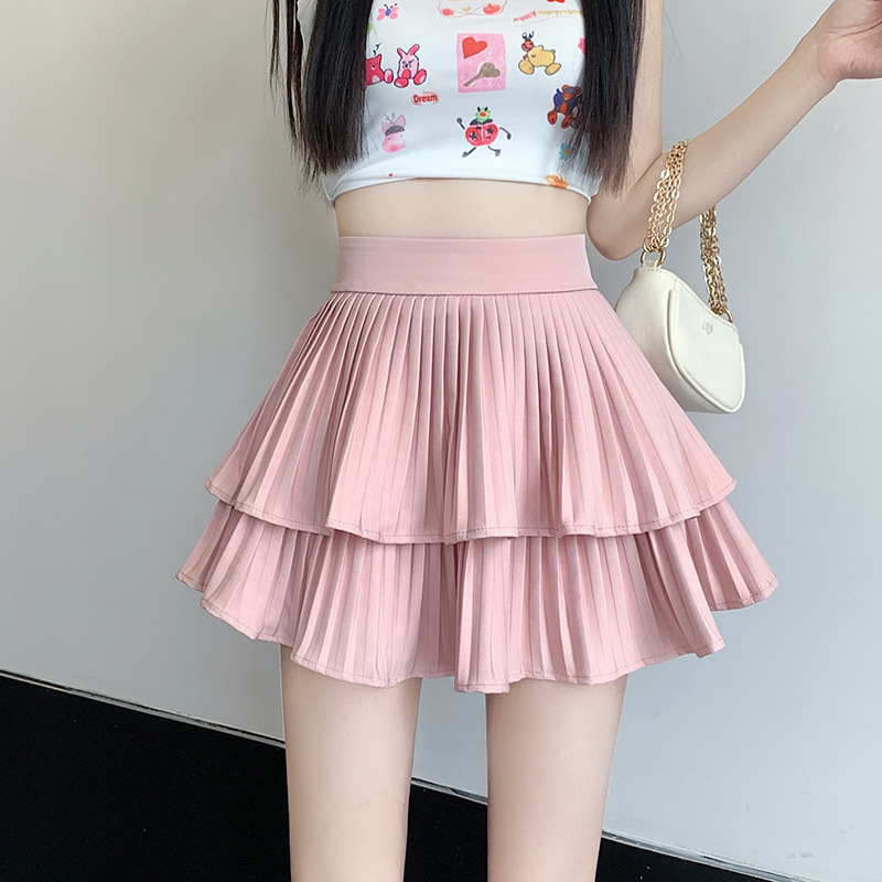 荷叶边半身裙女春夏新款百褶纯色高腰蛋糕裙A字显瘦蓬蓬短裙
