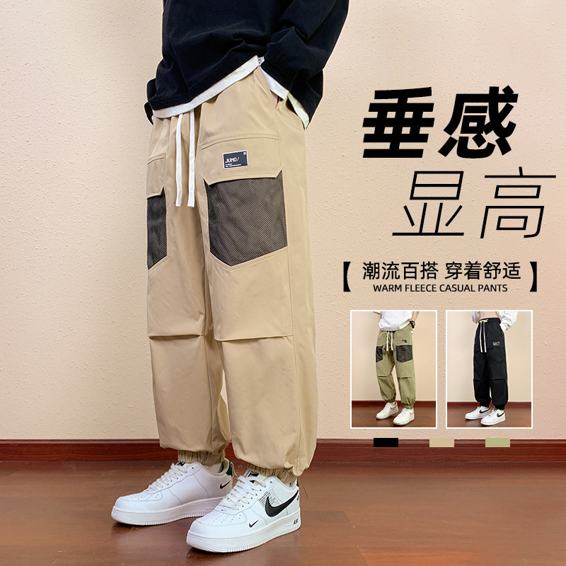 男款春夏薄款水洗工装裤宽松美式潮牌束脚长裤休闲多口袋垂感裤子