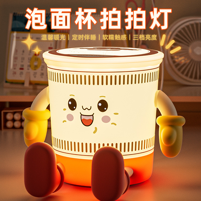 泡面杯小夜灯 女生情人节礼物创意摆件充电床头喂奶硅胶拍拍灯