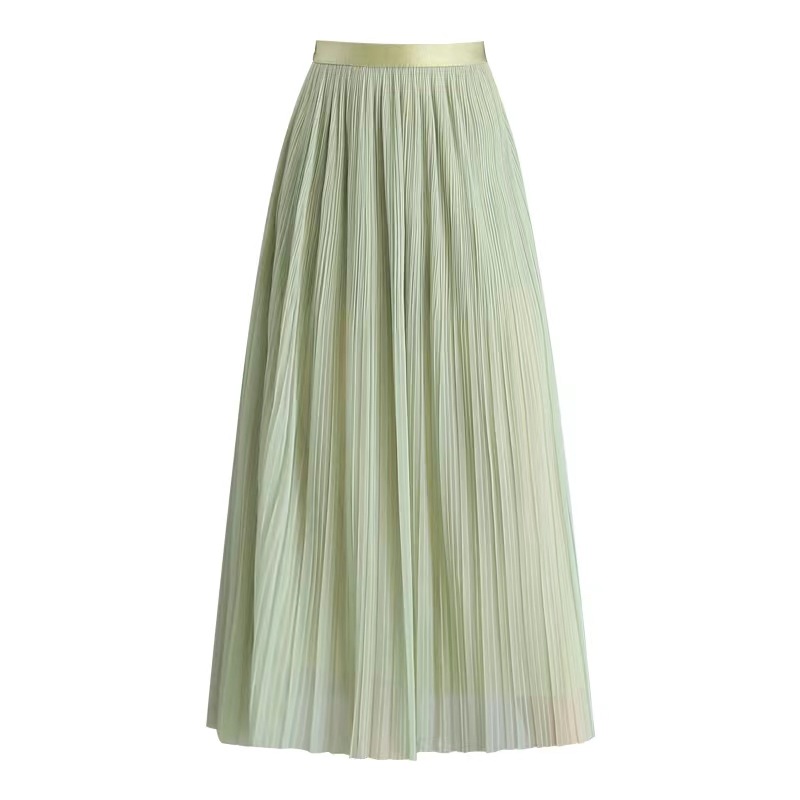 细褶网纱百褶裙春夏新款飘逸仙女大摆A字纱裙中长款半身裙女