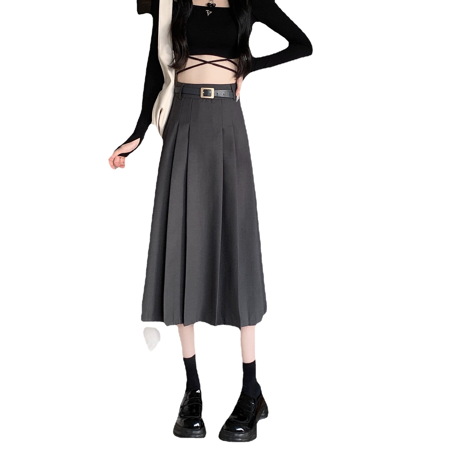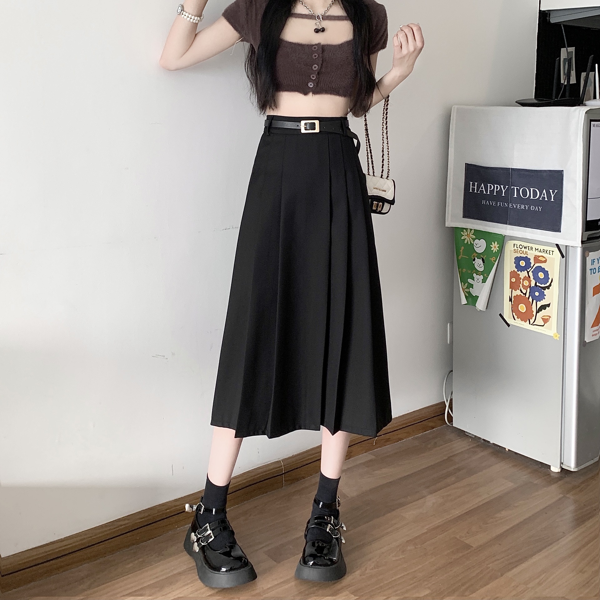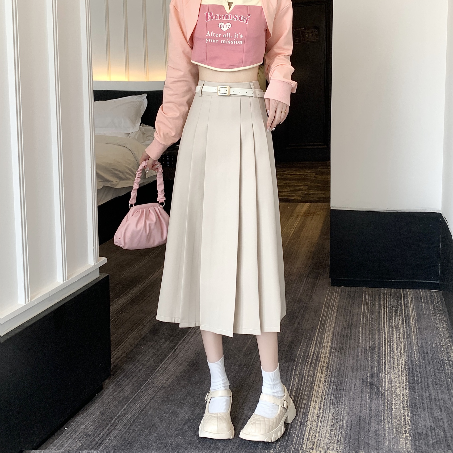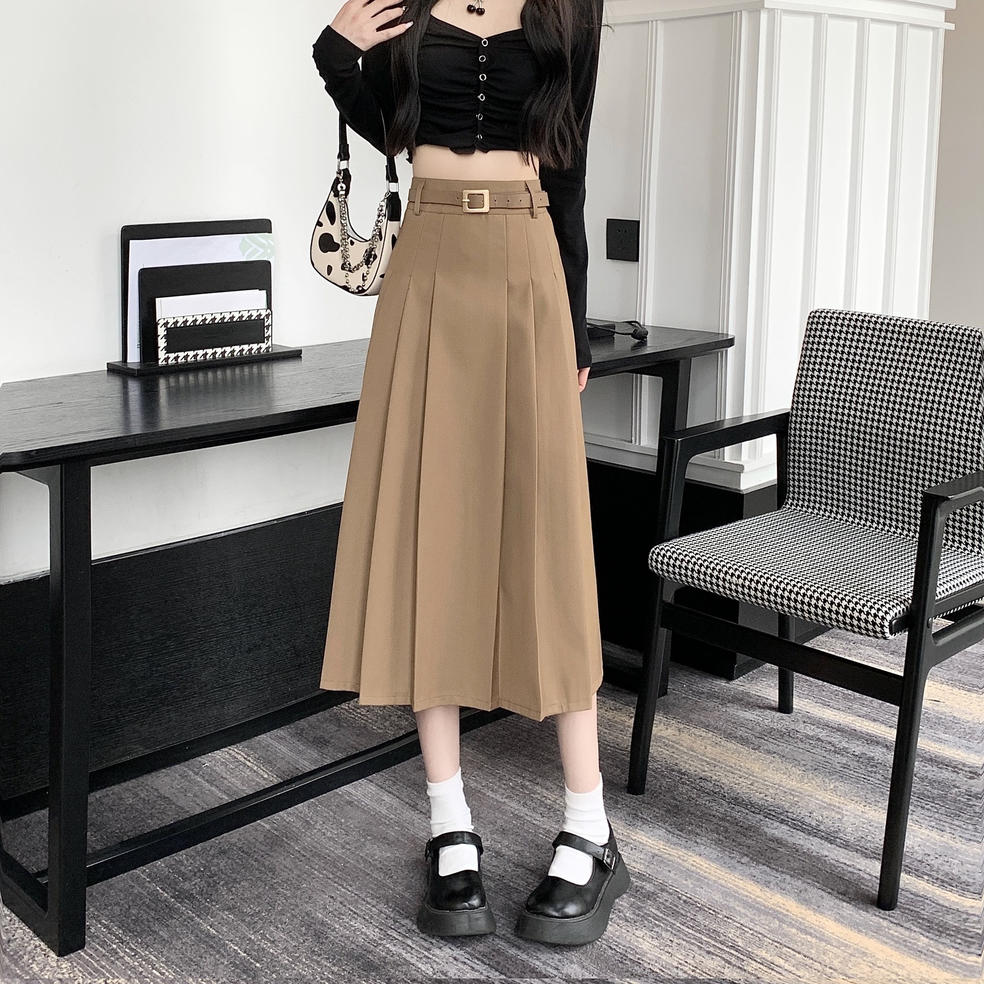 卡其色半身裙女春夏中长款a字显瘦高腰百褶裙半裙小个子包臀长裙