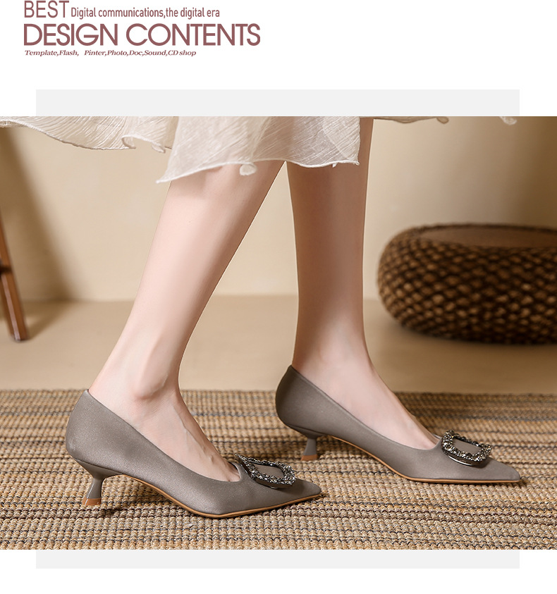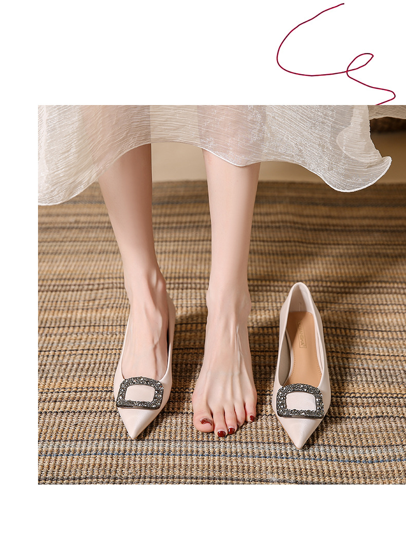 女鞋年新款尖头细跟高跟鞋浅口工作鞋春季玛丽珍鞋女法式女士