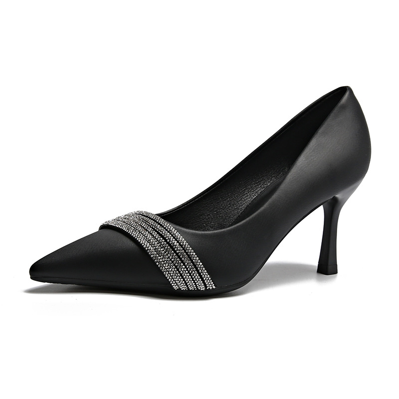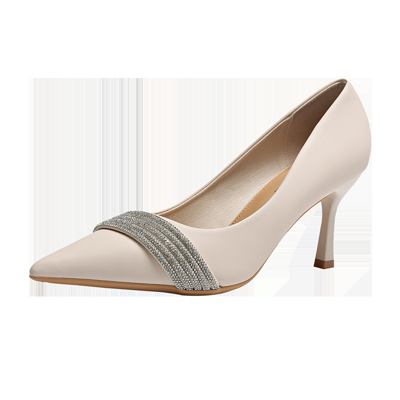 气质女鞋新款时尚尖头高跟鞋 轻奢超纤水钻细跟日常单鞋 24年新款