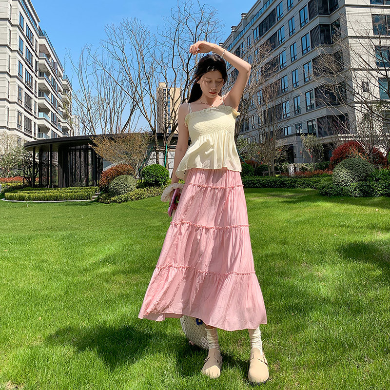 粉色密边半身裙女春夏新款腰气质仙女中长款蛋糕裙芭蕾风A字蓬蓬