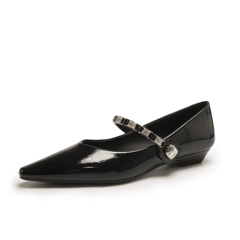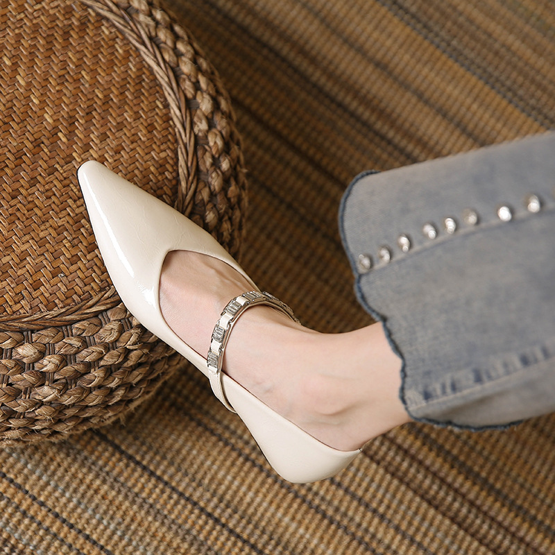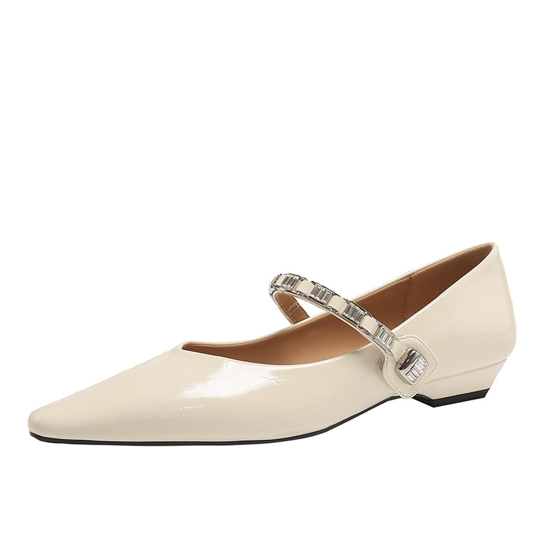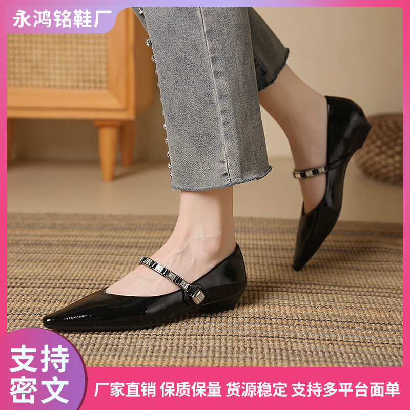 新款低跟尖头一字带单鞋 软底软面时尚百搭单鞋 玛丽珍鞋子