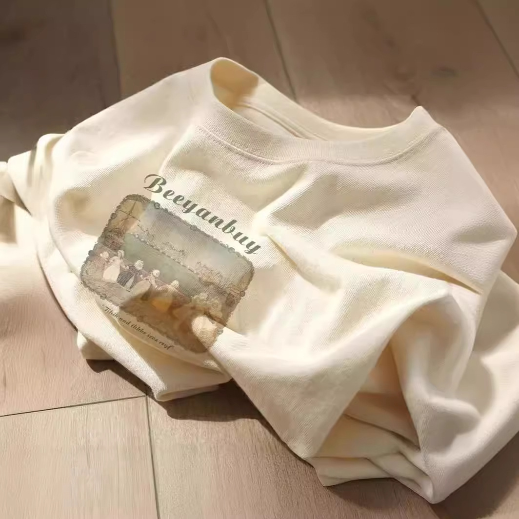 纯棉短袖t恤女夏季新款设计感小众港风chic复古宽松半袖上衣