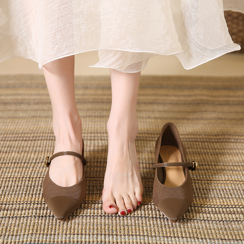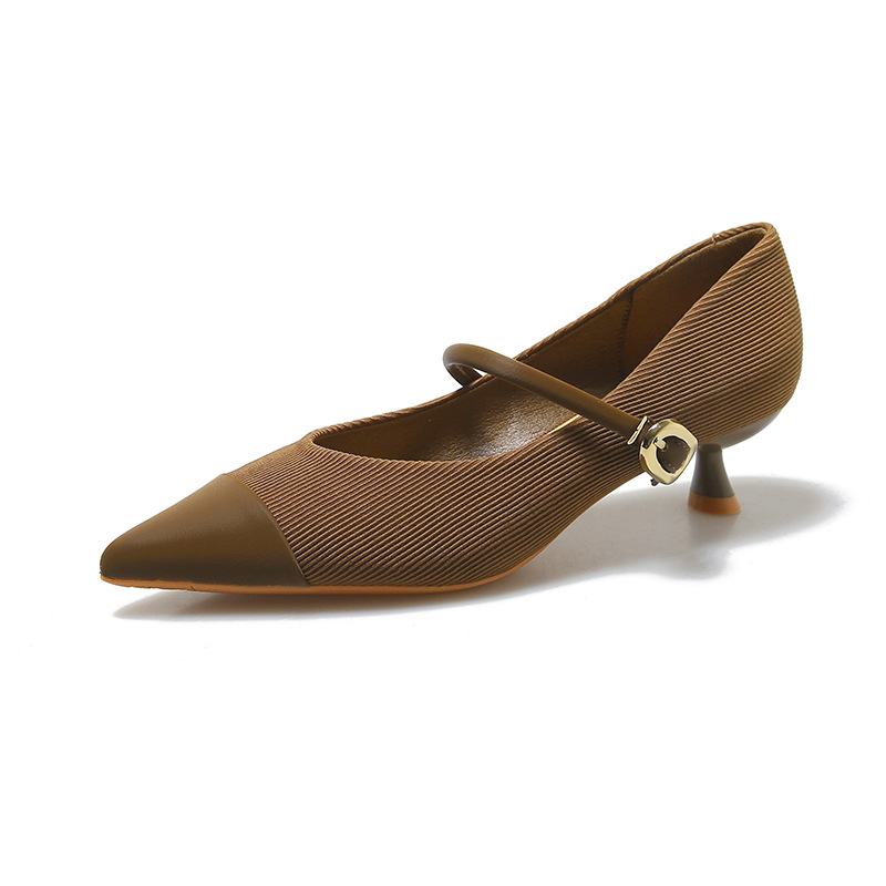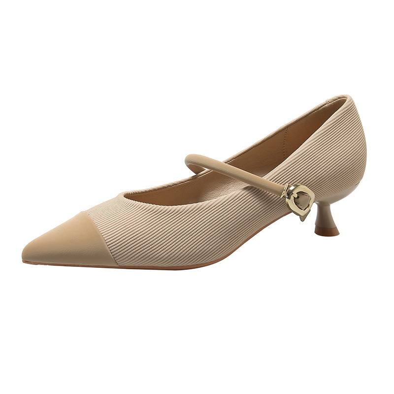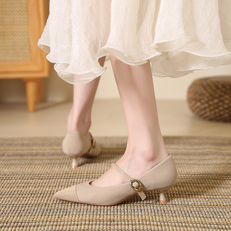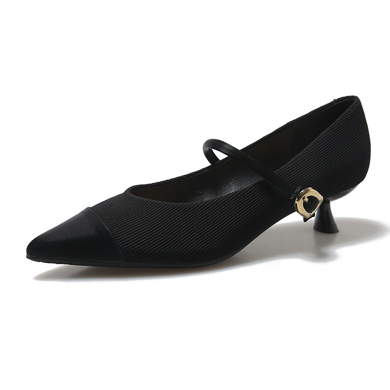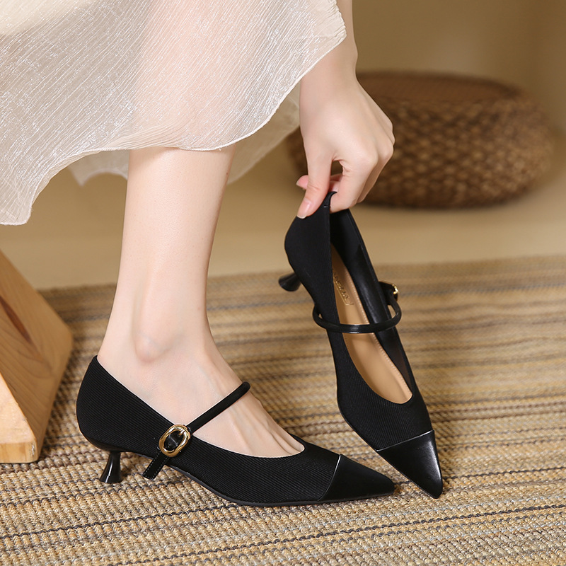 835-17法式拼色玛丽珍鞋秋季猫跟单鞋软皮尖头细跟高跟鞋